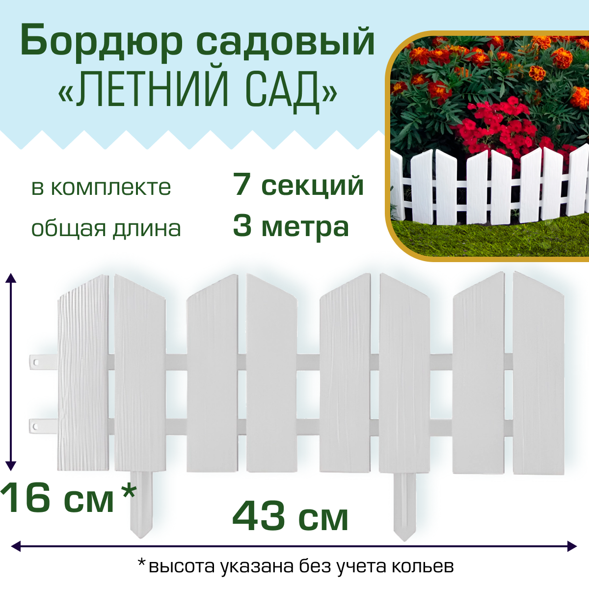 Бордюр садовый Полимерсад "Летний сад", белый интересное: