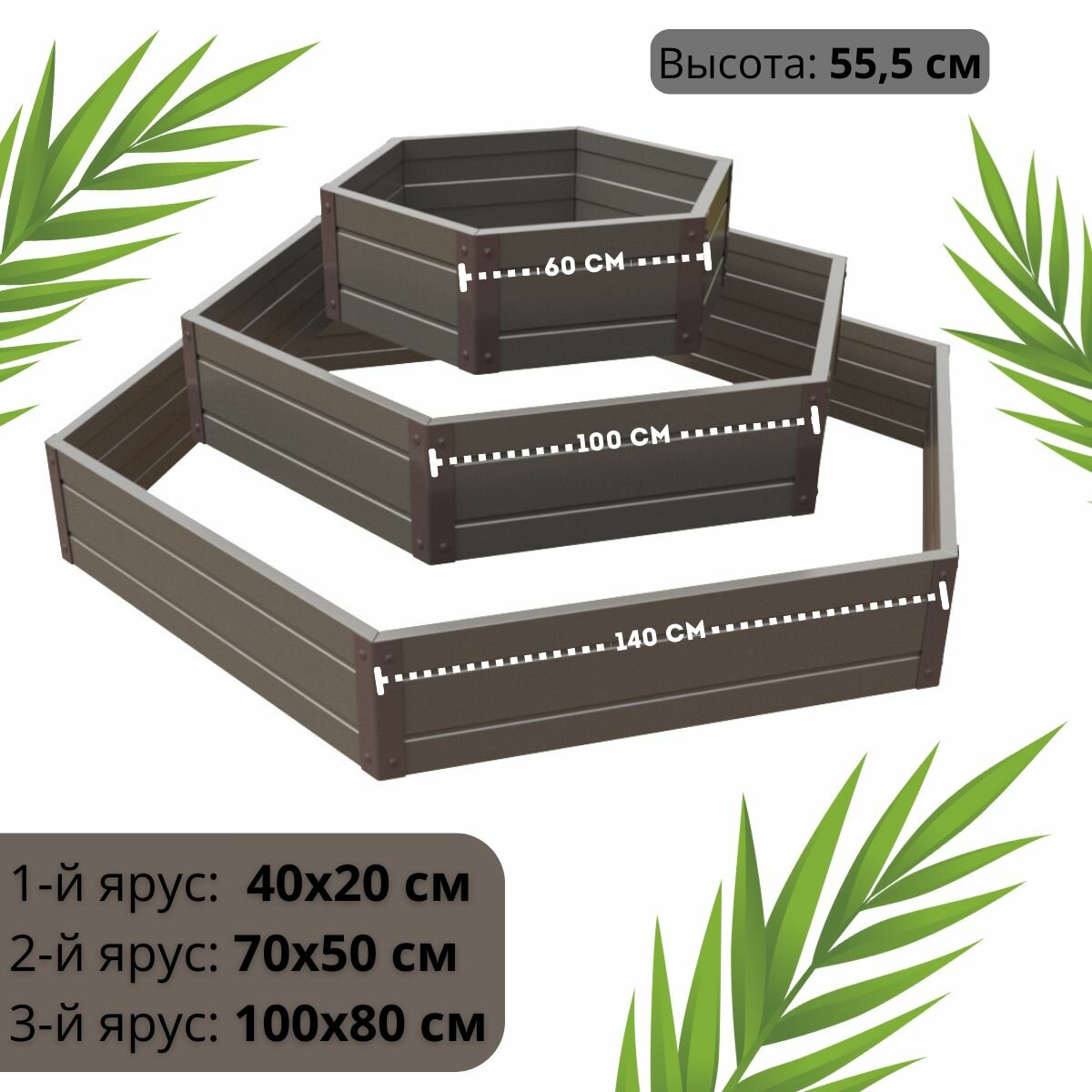 Парники Сибири/Клумба из ПВХ, пластика, "Шестиугольник" диаметр 1400 мм, высота 185 мм, Цвет: Коричневый