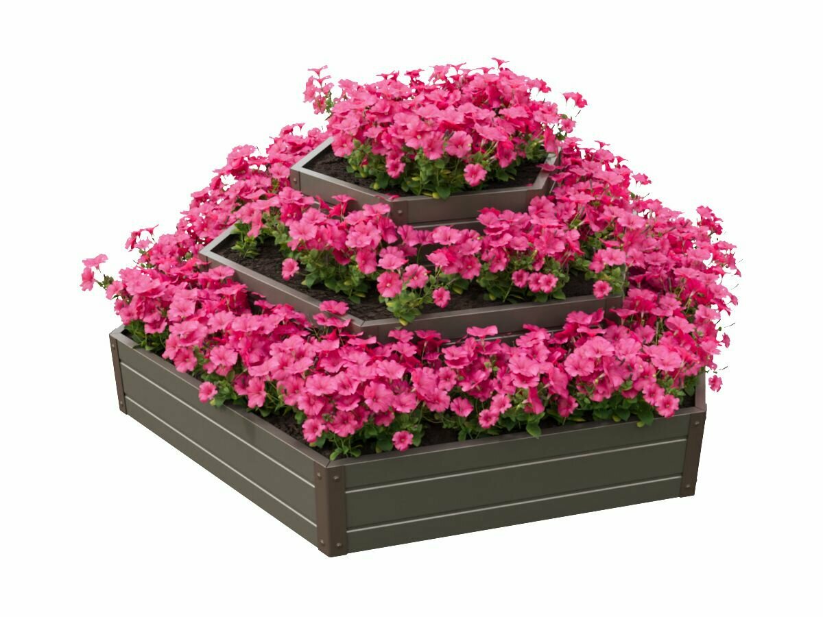 Парники Сибири/Клумба из ПВХ, пластика, "Шестиугольник" диаметр 1000 мм, высота 185 мм, Цвет: Коричневый