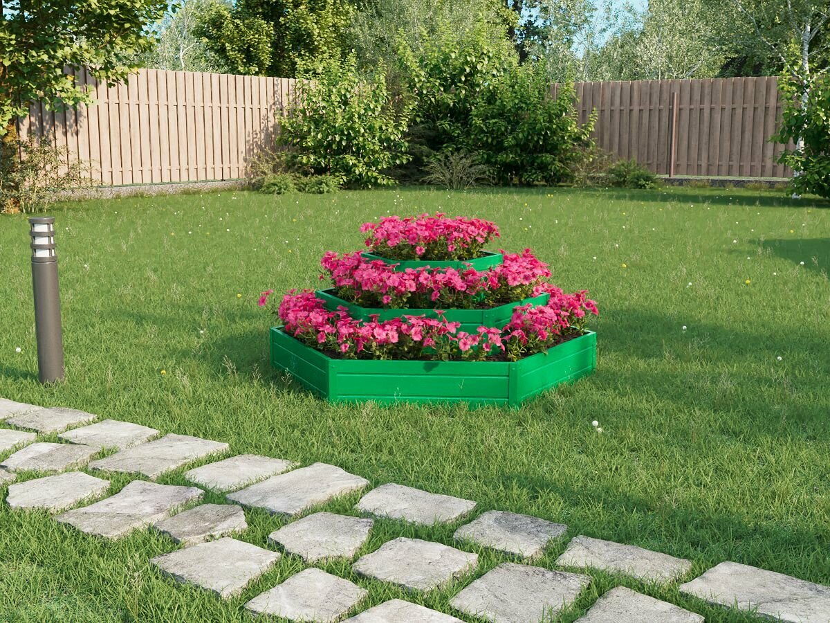 Парники Сибири/Клумба из ПВХ, пластика, "Шестиугольник" диаметр 1000 мм, высота 185 мм, Цвет: Зеленый