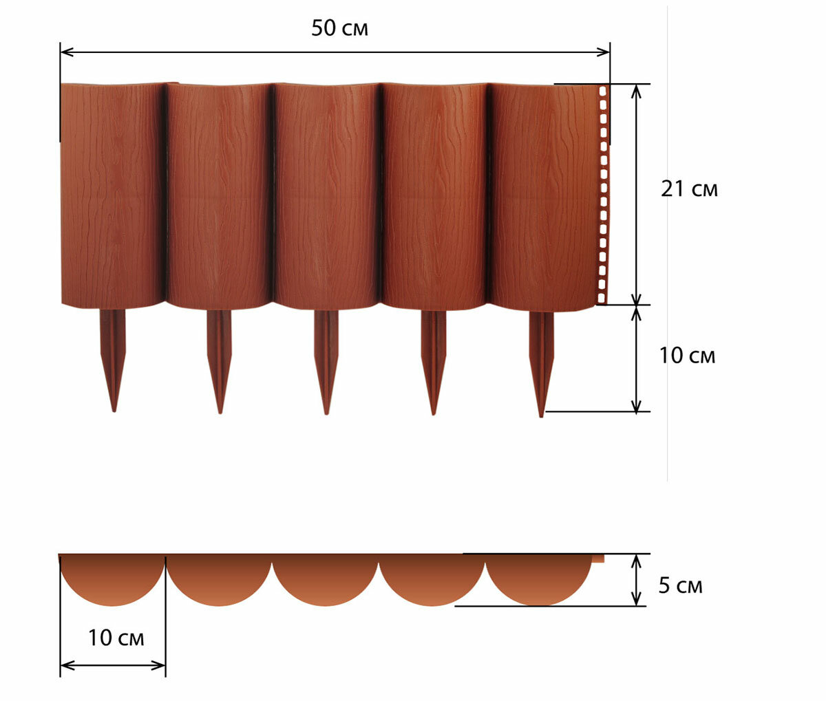 Ограждение садовое "Садовый конструктор",Мастер сад, коричневое, высота 21 см