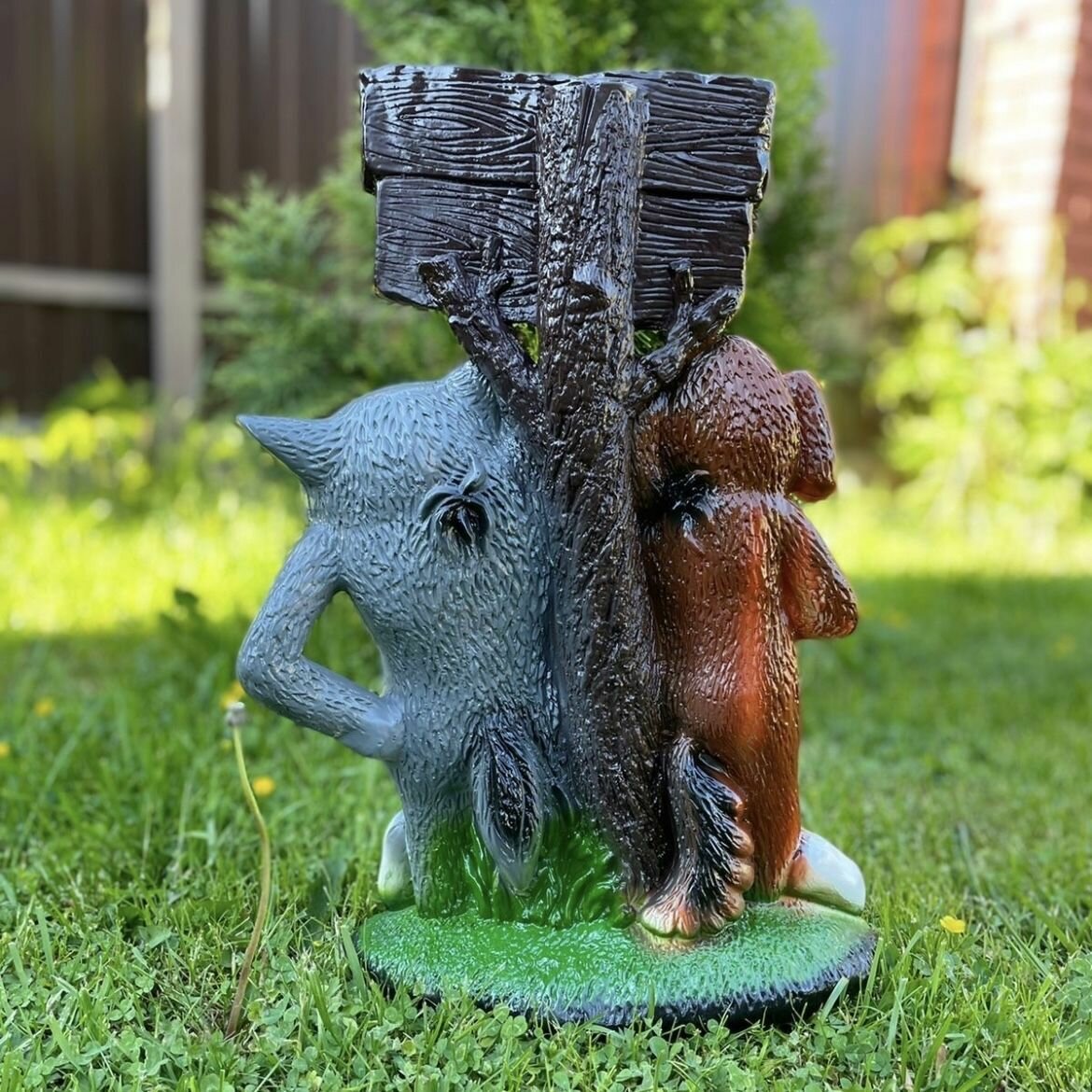 "Волк с табличкой 33см" Садовая фигура / Подарок