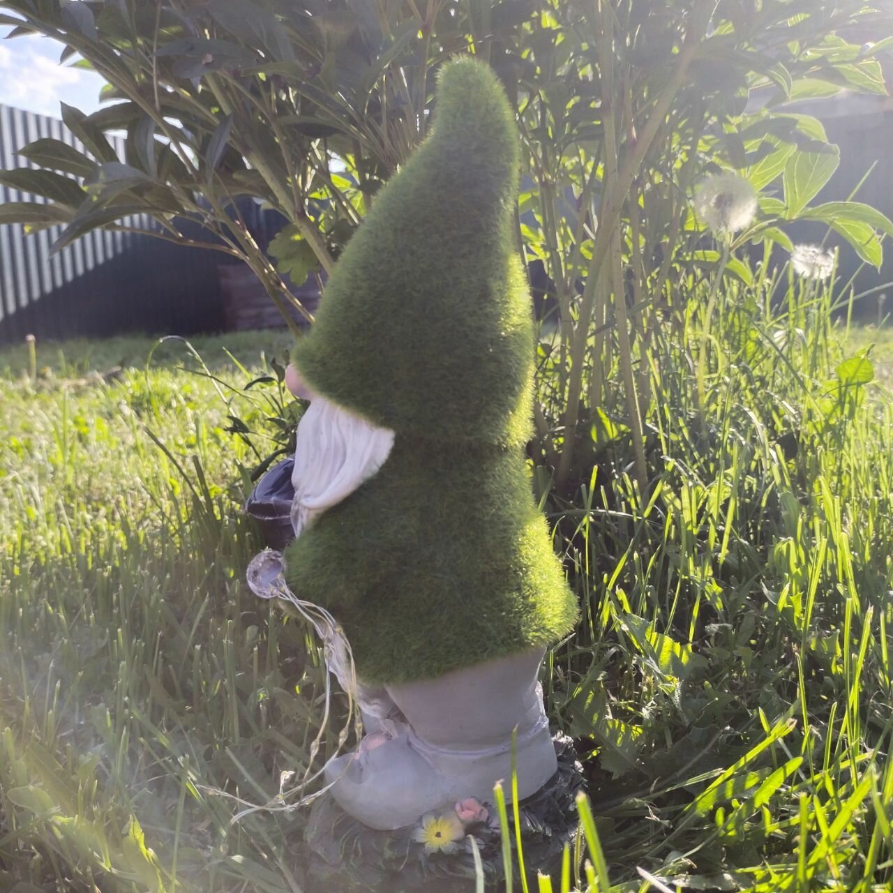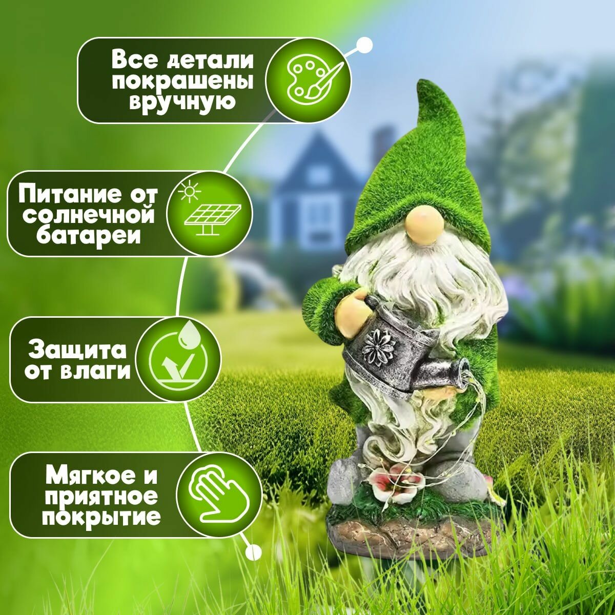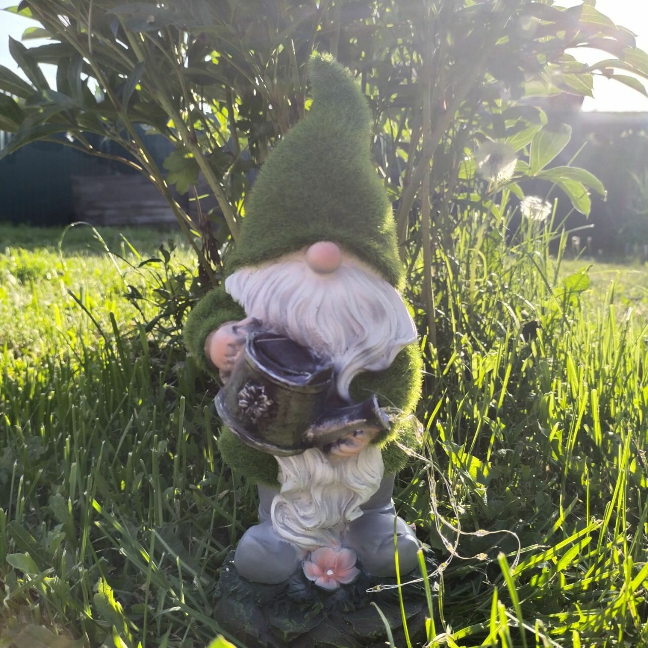 Садовая фигурка на газон с подсветкой "Гном с лейкой", материал - полиэфирная смола интересное: