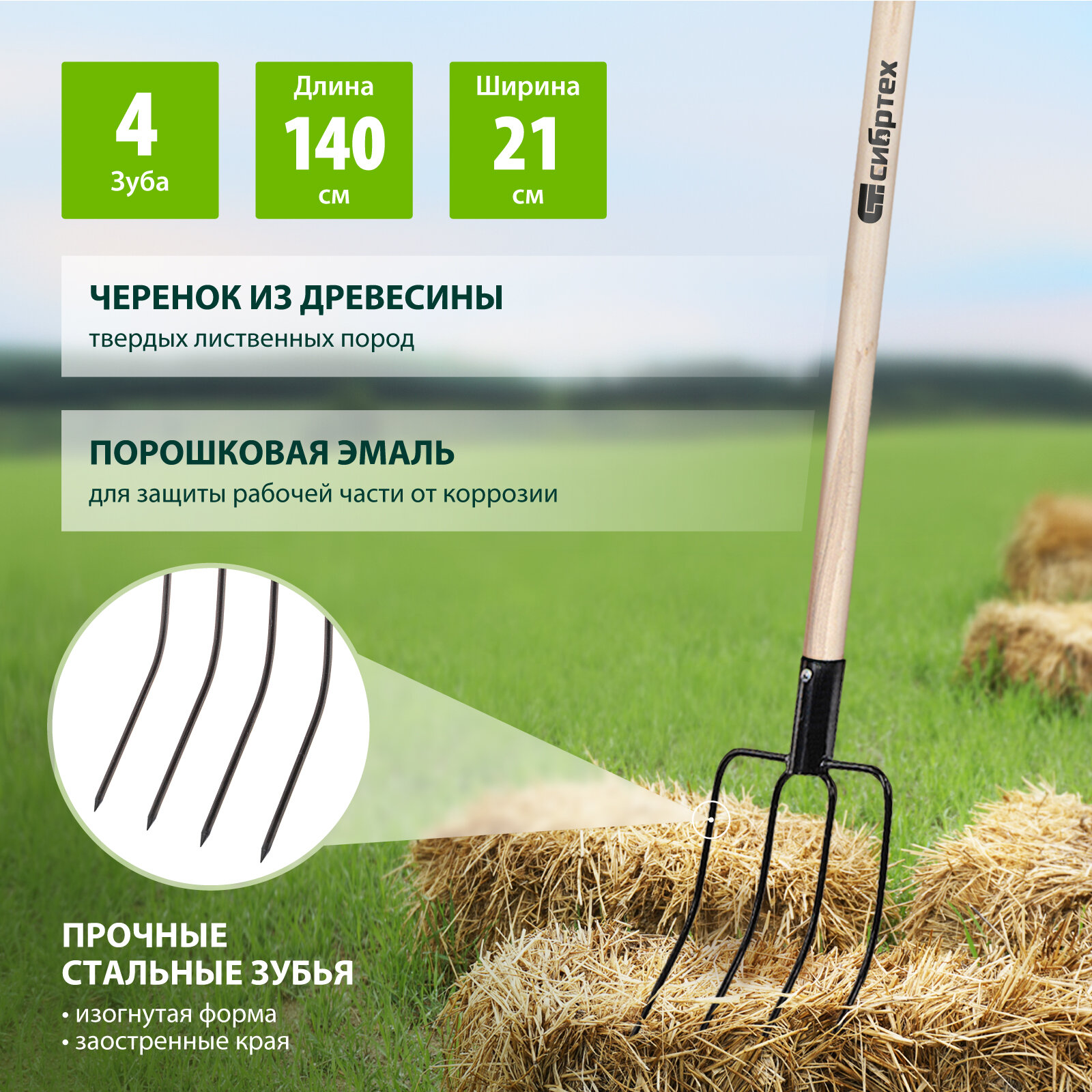 Вилы 4-х рогие Сибртех сенные, 210х310х1400 мм, деревянный черенок 63807 интересное: