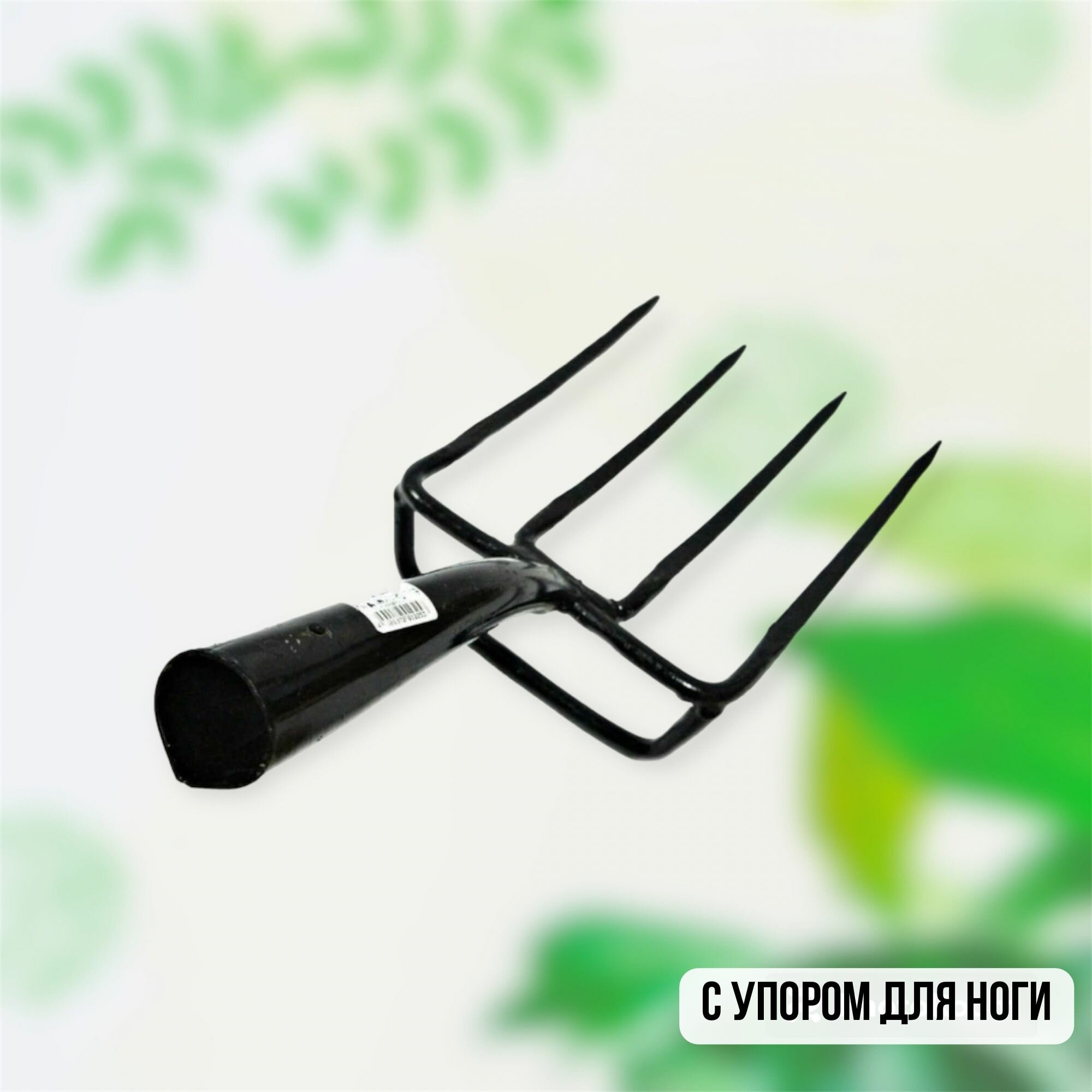 Купить Вилы садовые, 4-х рогие, с упором, копальные, тонкие 195х220 мм, кованые, без черенка, арти Россия