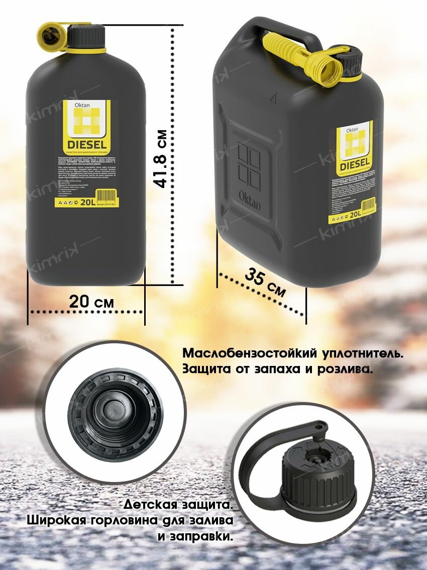 Купить KGA1-01-17 Канистра ГСМ DIESEL, черная с желтым шлангом, 20 л, Oktan