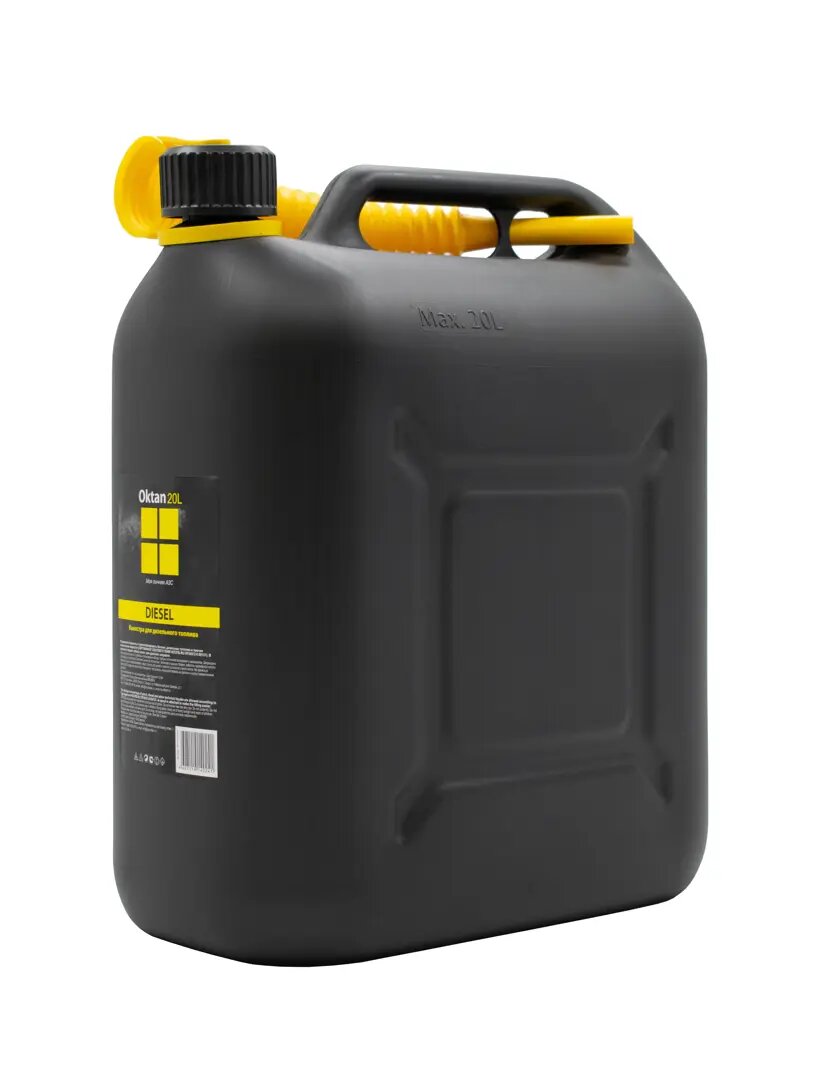 Канистра ГСМ DIESEL, черная с желтым шлангом, 20 л, Oktan