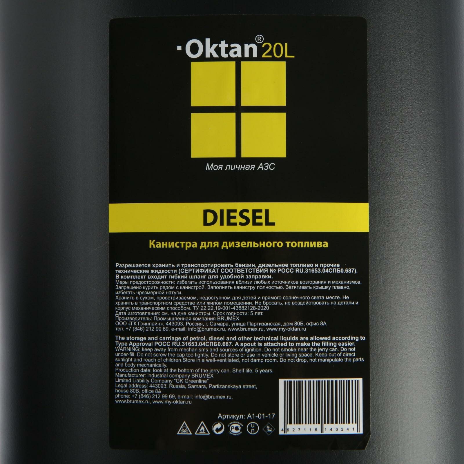 Канистра для бензина Oktan Дизель А1-01-17 автомобильная ГСМ 20 л пластиковая черная