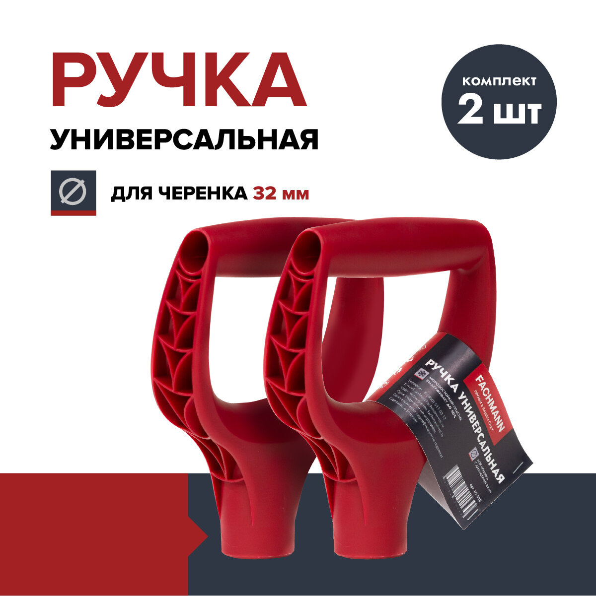 Ручка для лопаты FACHMANN Garten (комплект 2 шт.), пластик, D-образная, красная, 32 мм, рукоятка интересное: