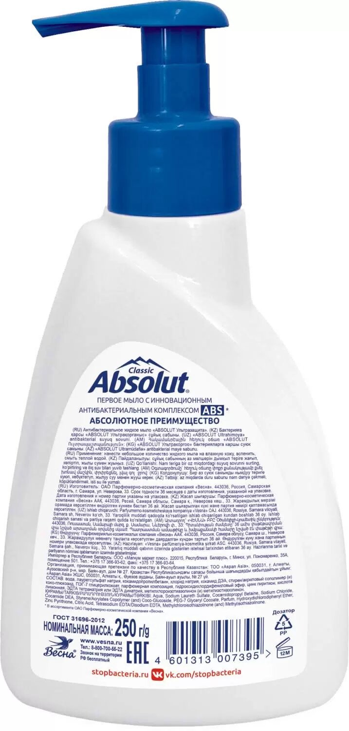 Купить Absolut Мыло жидкое Classic АВС Ультразащита, 250 г