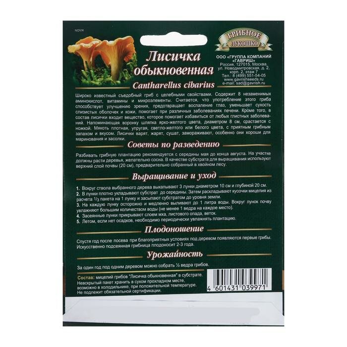 Мицелий Лисички на зерновом субстрате, 15мл, Гавриш интересное: