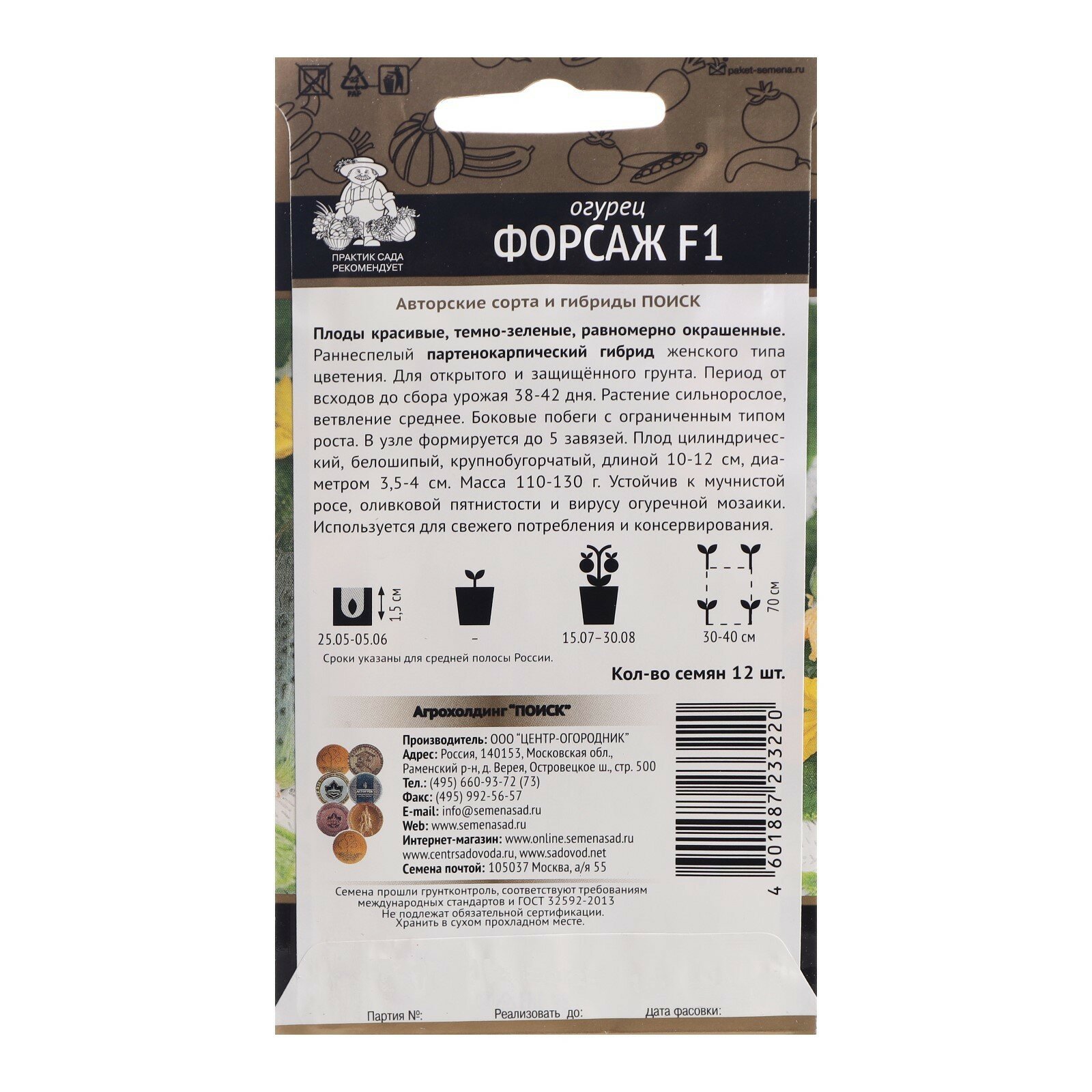 Семена овощей Поиск "Огурец Форсаж", F1, 12 шт. 2 пакета