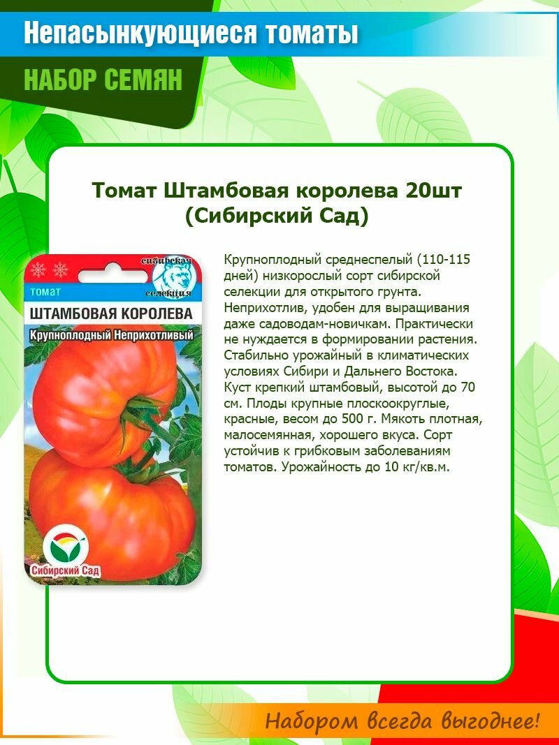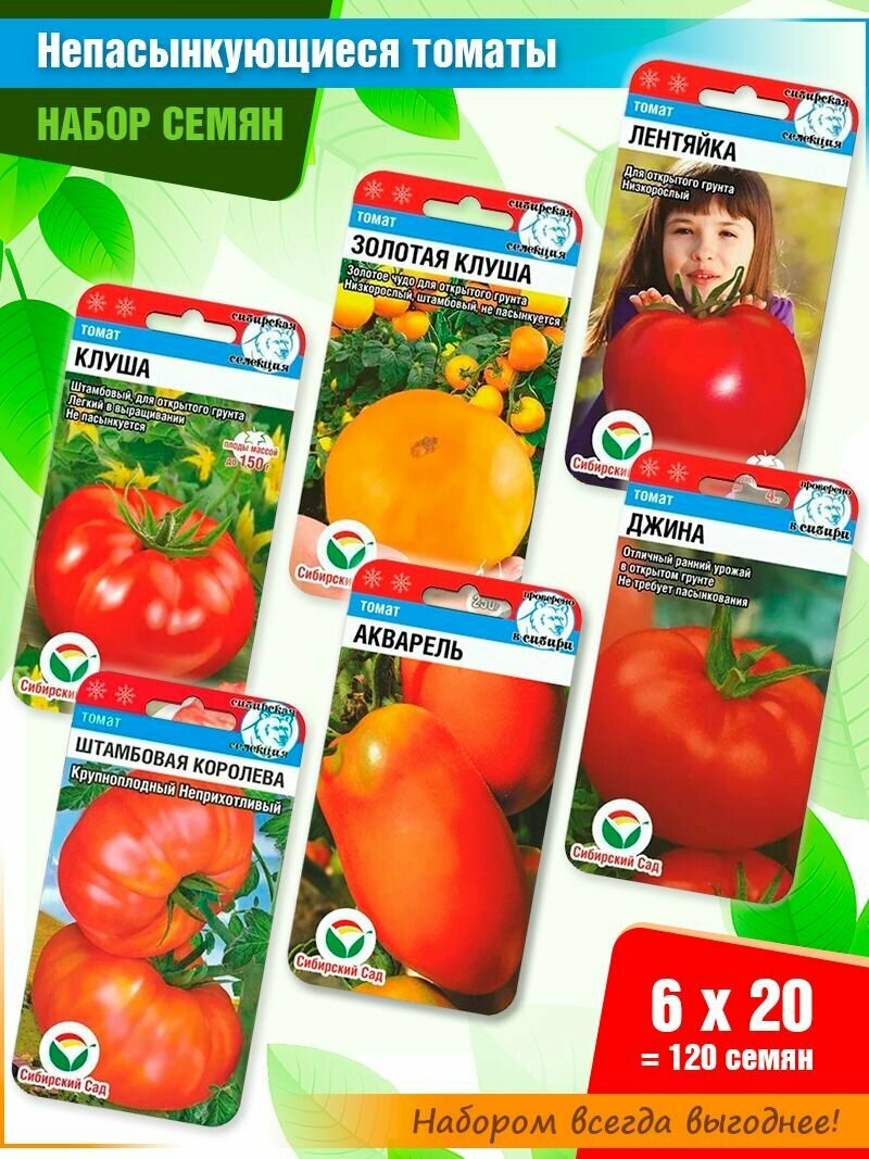 Набор семян непасынкующихся томатов "Ленивый огородник" от Сибирского Сада (6 пачек) интересное: