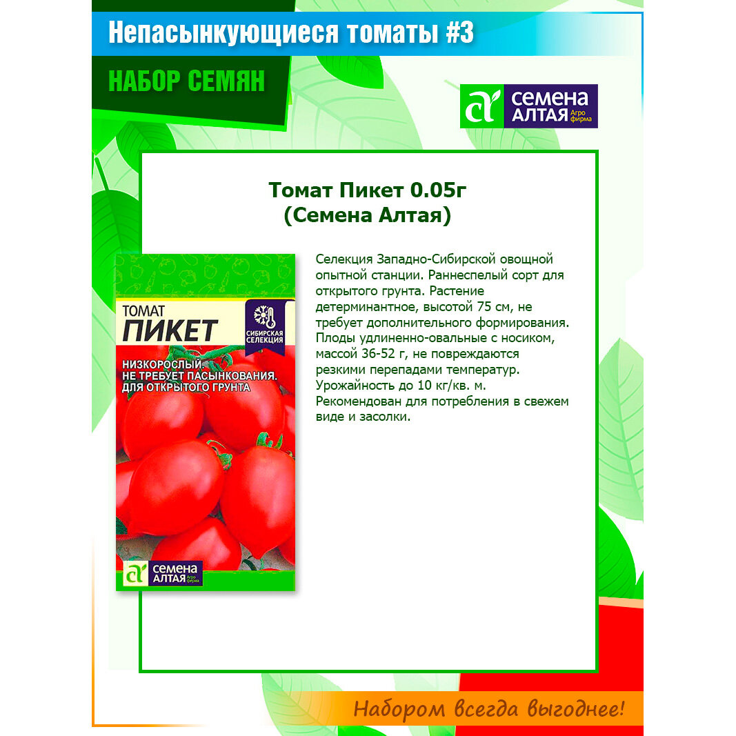 Семена непасынкующихся томатов "Ленивый огородник #3" от Семена Алтая (6 пачек) интересное: