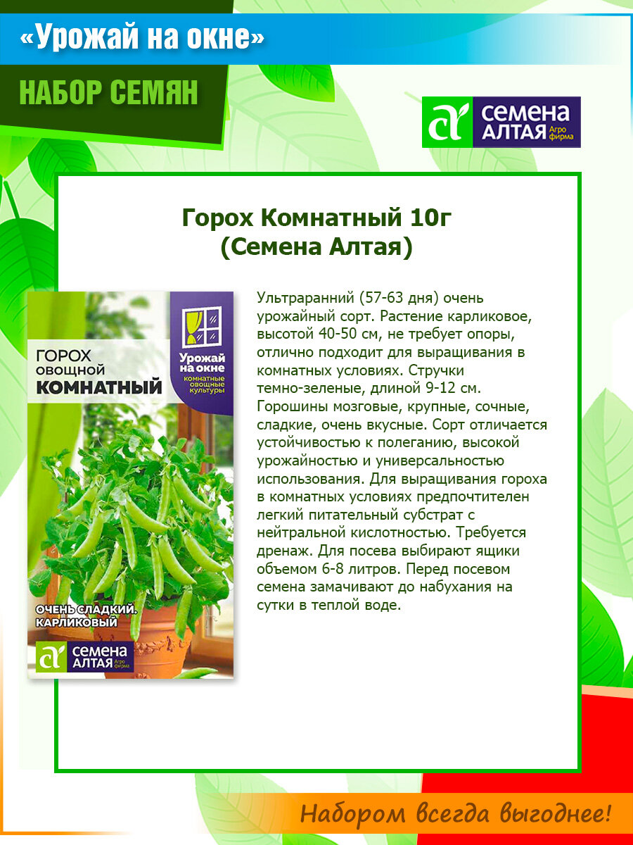 Купить Набор семян "Урожай на окне": кориандр (кинза) Янтарь, базилик Ред Рубин, горох Комнатный от Семена Алтая (3 пачки)