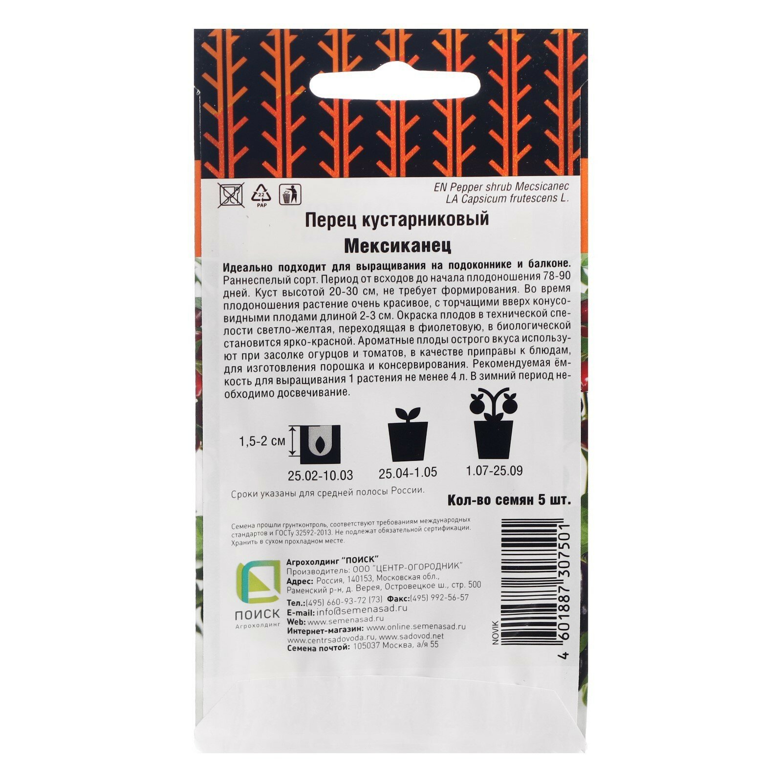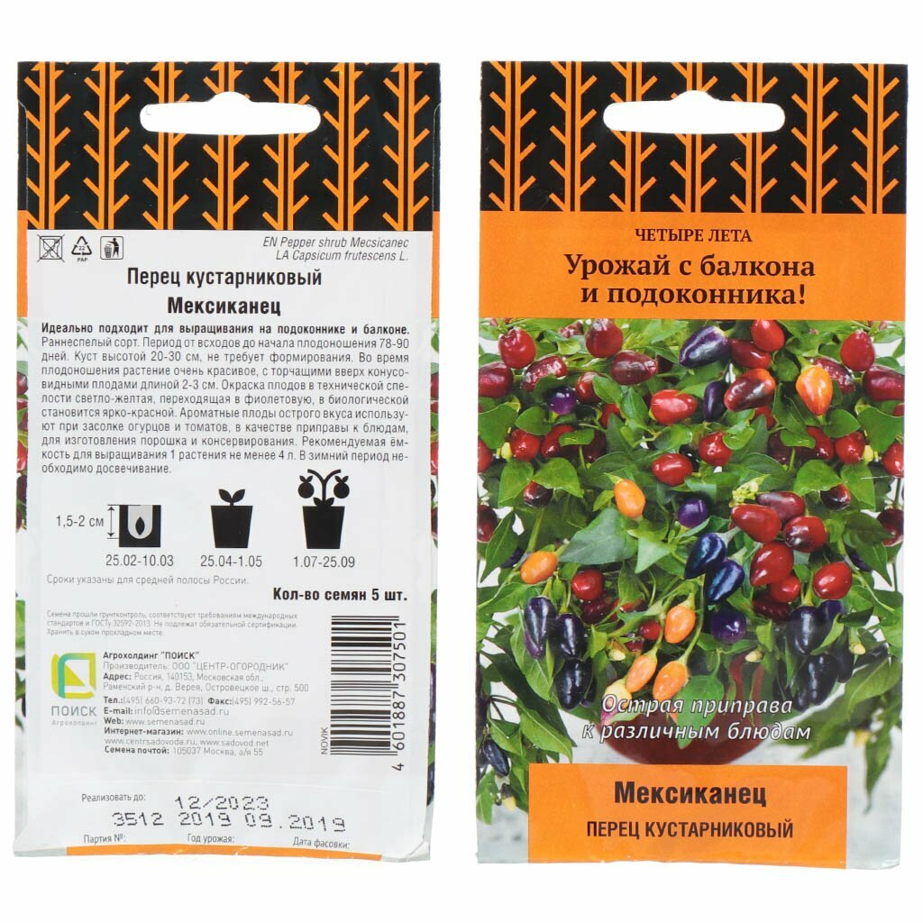 Семена овощей Поиск "Перец острый кустарниковый Мексиканец", 5 шт., Четыре лета, 3 пакета