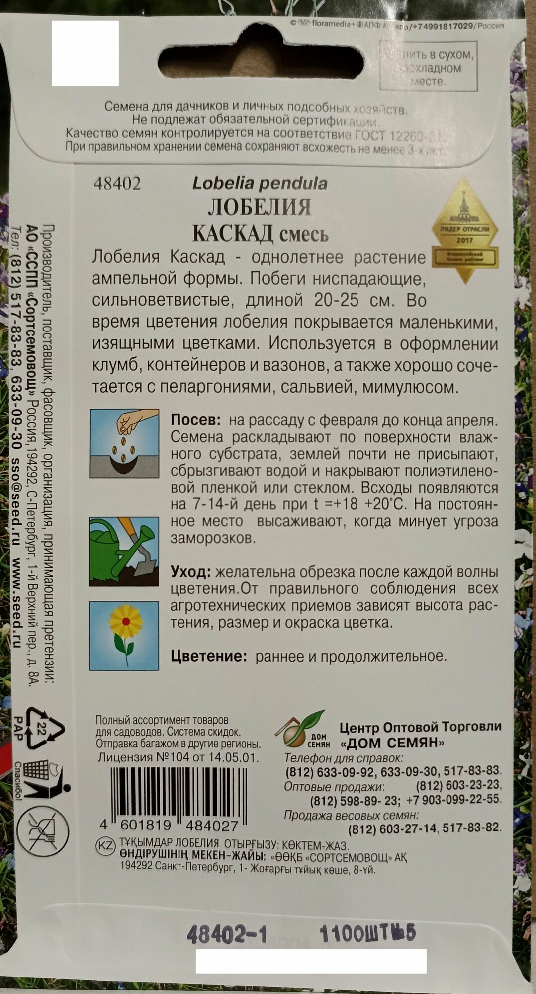 Лобелия Каскад смесь, обильноцветущий однолетник ампельной формы, идеально для клумбы кашпо вазонов, прекрасный ковер из цветов, 1100 семян интересное: