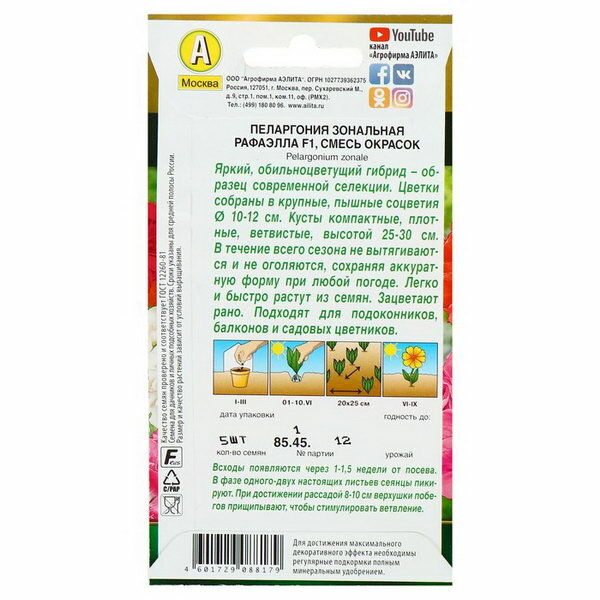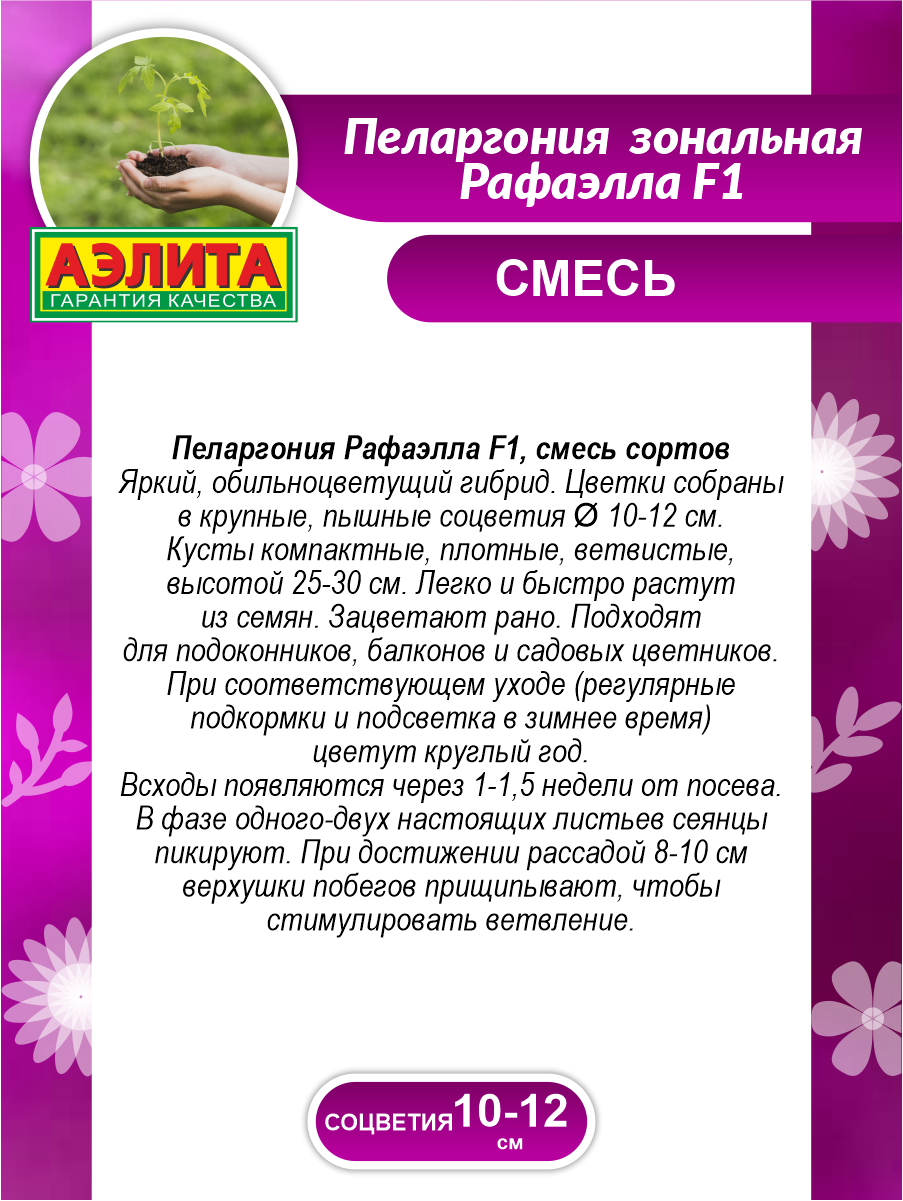 Семена Пеларгония Рафаэлла F1, смесь окрасок 5 шт (семян) (Аэлита) интересное: