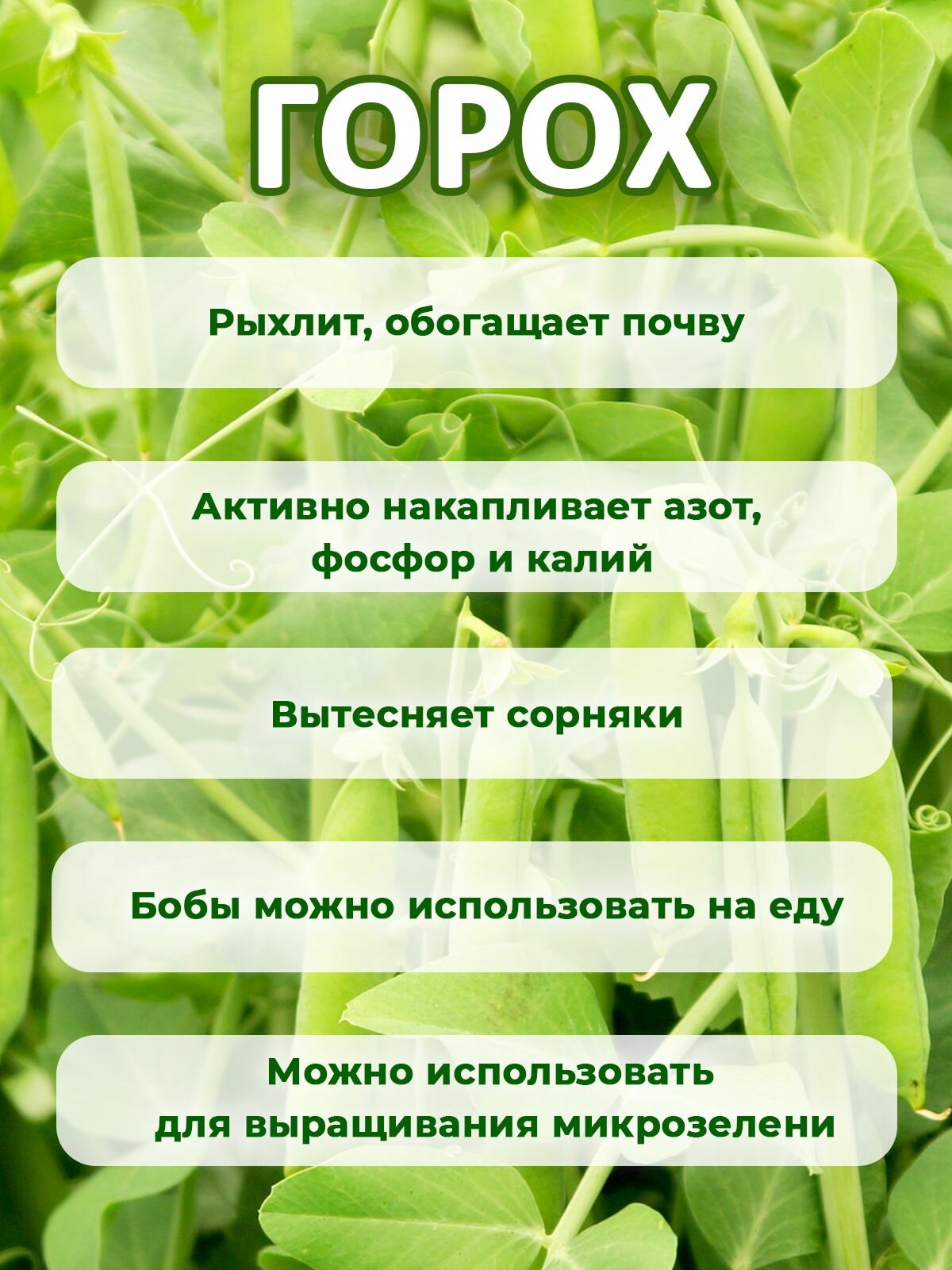Семена Горох посевной сидерат 1кг интересное: