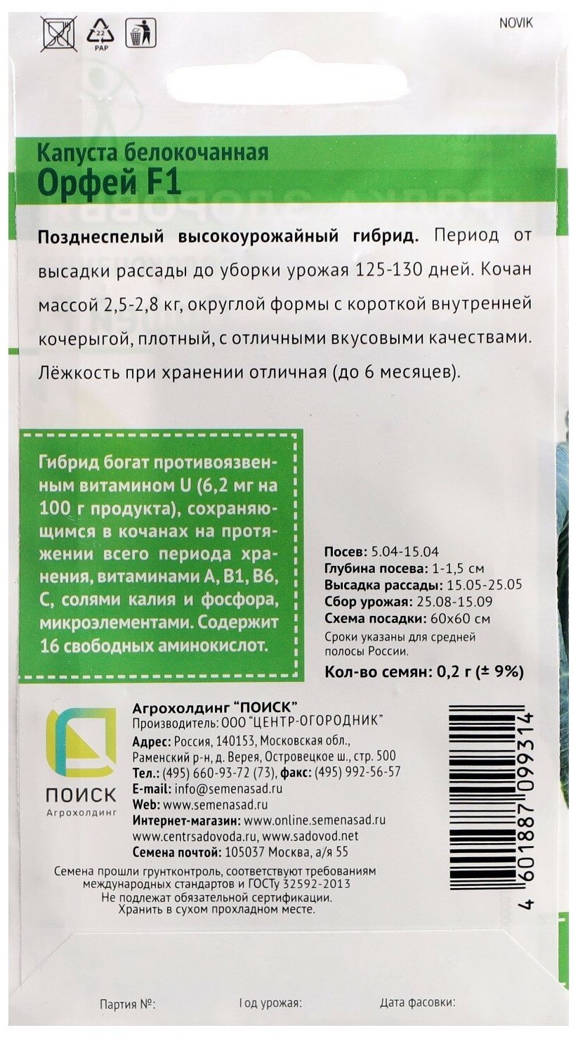 Капуста белокочанная Агрохолдинг поиск Орфей F1 (А) 0.2 гр 812951