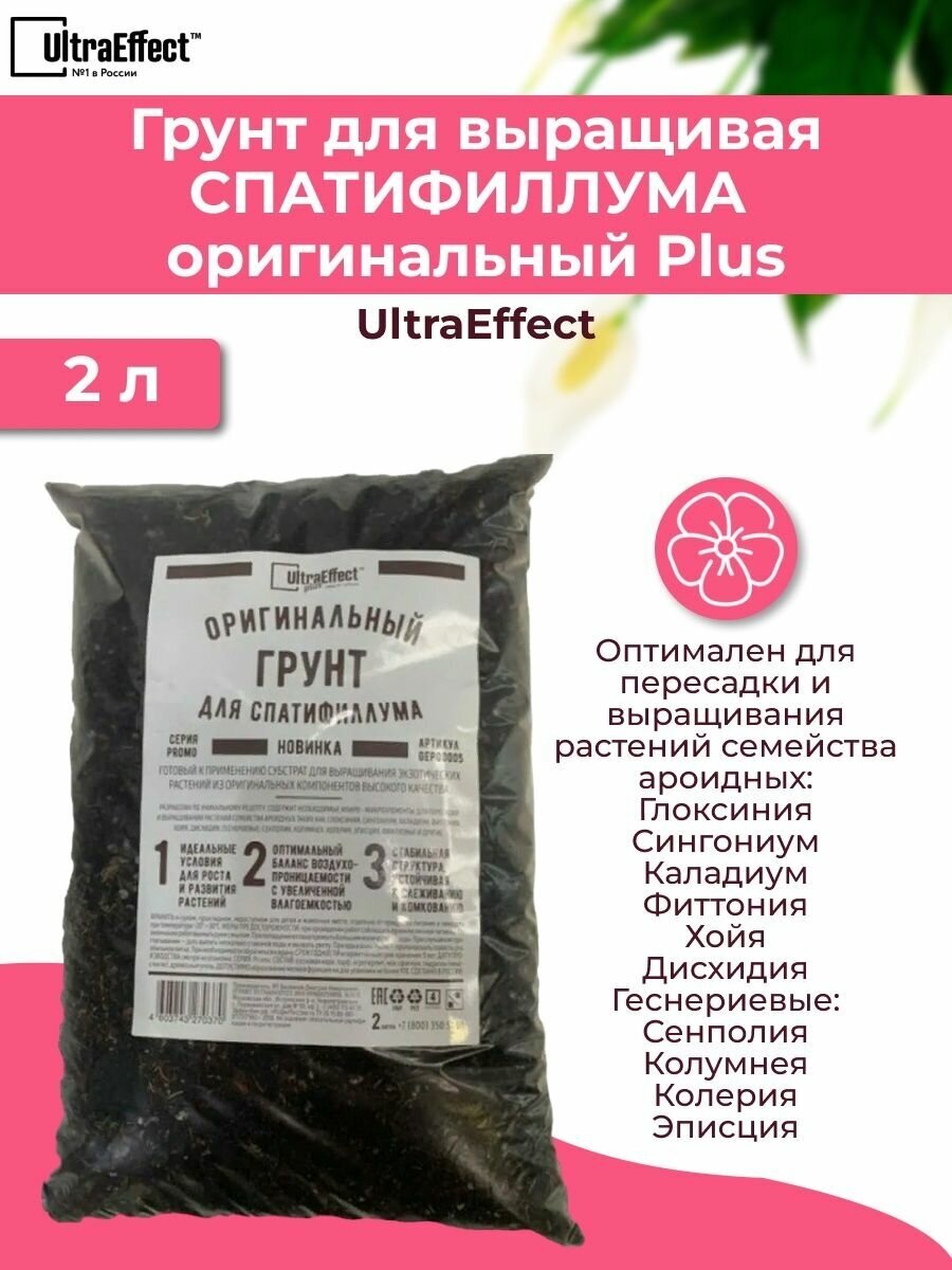 Грунт оригинальный для выращивания Спатифиллума Ultra Effect+ 2,0 литра интересное: