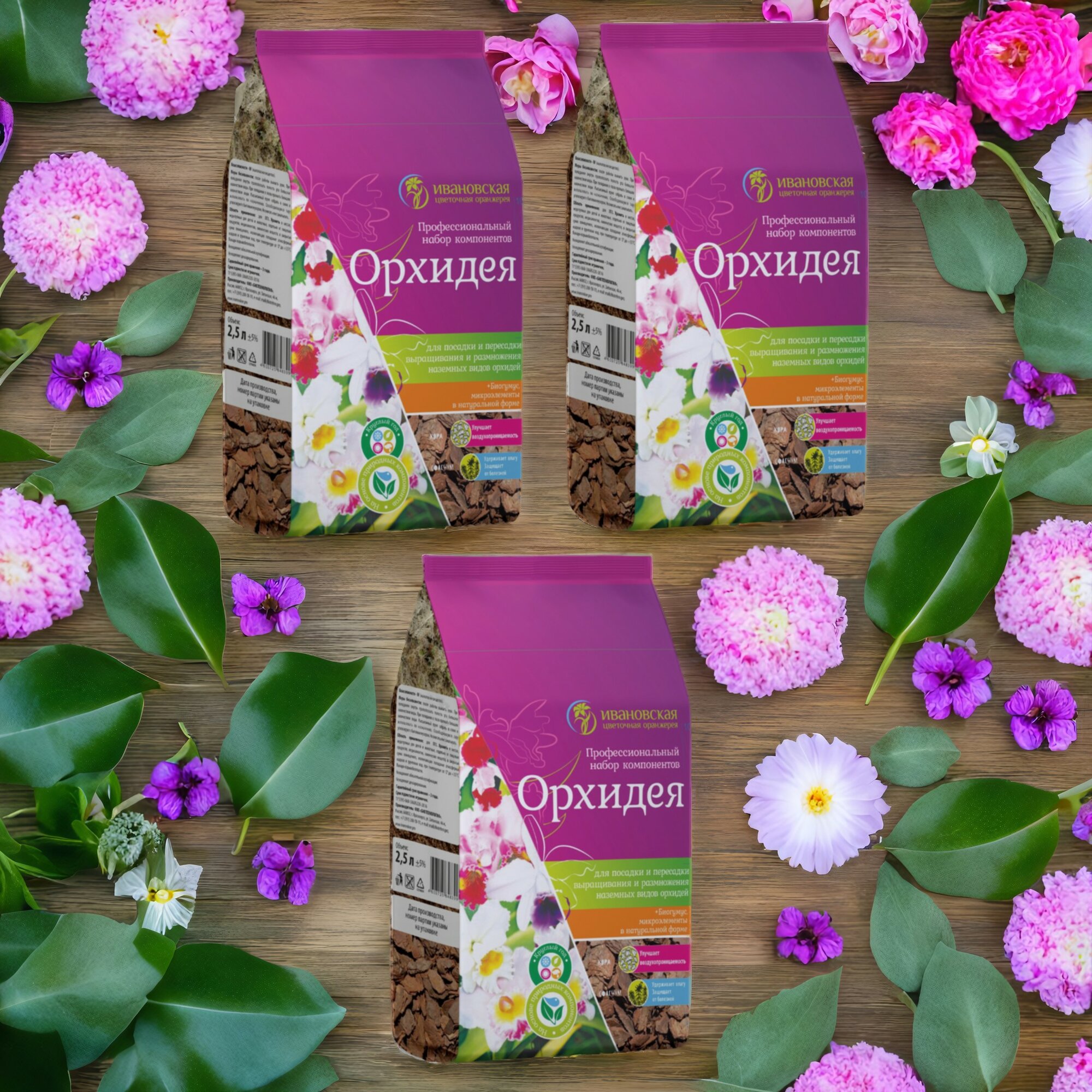 Грунт для орхидеи наземной 2.5л / 3шт. Ивановская Цветочная Оранжерея. интересное: