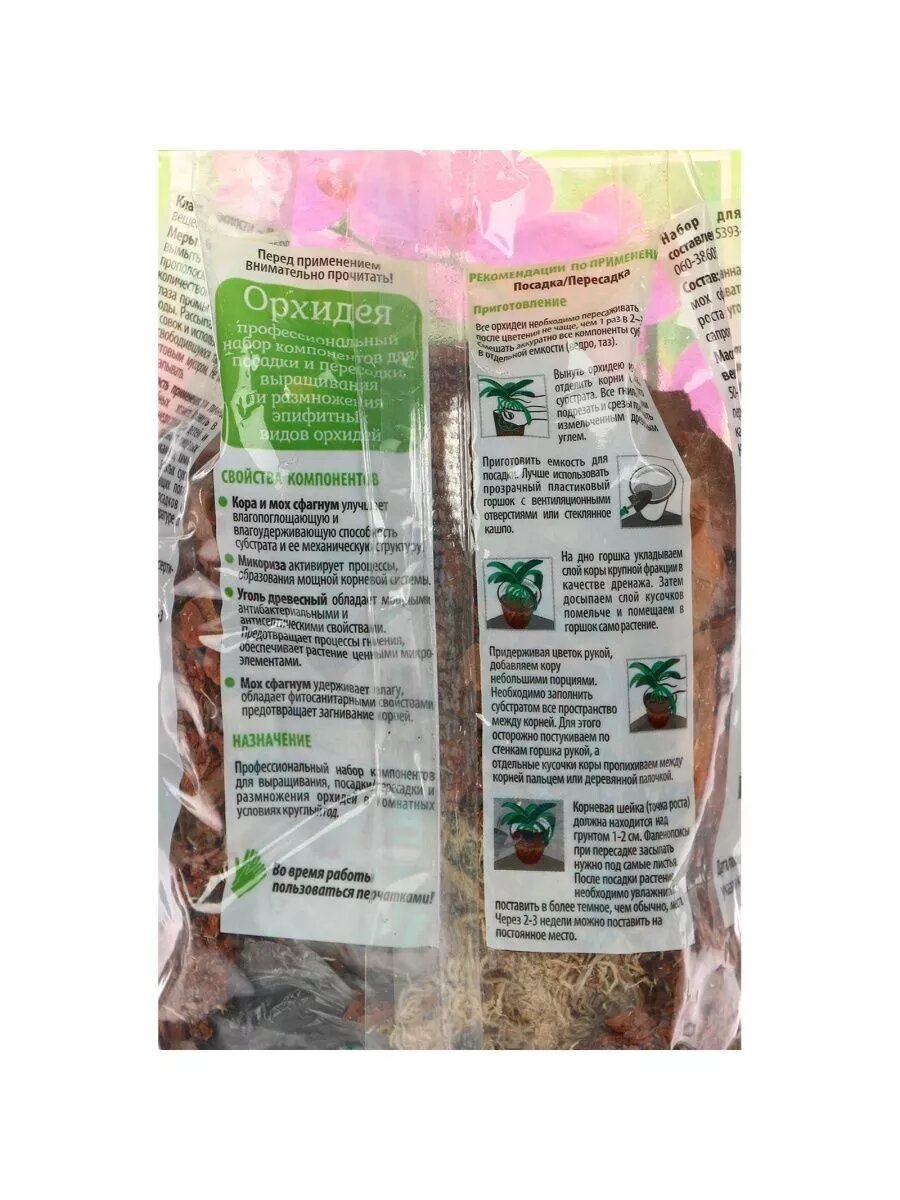 | Состав | Набор натуральных компонентов для эпифитных видов орхидей, 2 л |