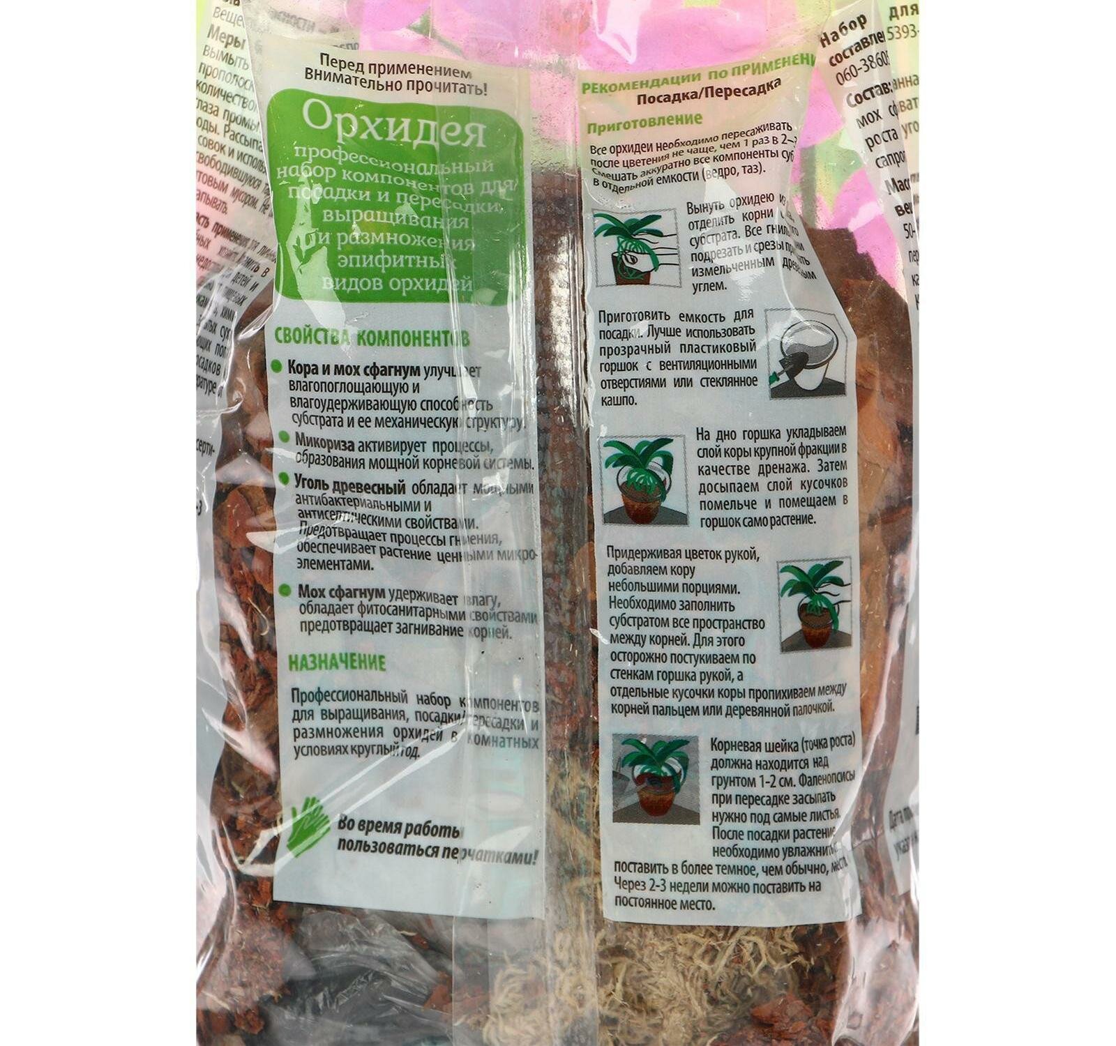 | Состав | Набор натуральных компонентов для эпифитных видов орхидей, 2 л |