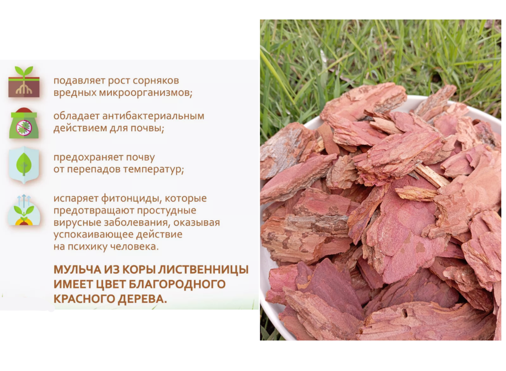 Мульча. Кора лиственницы, 5-12. Мульча для сада 60 литров интересное: