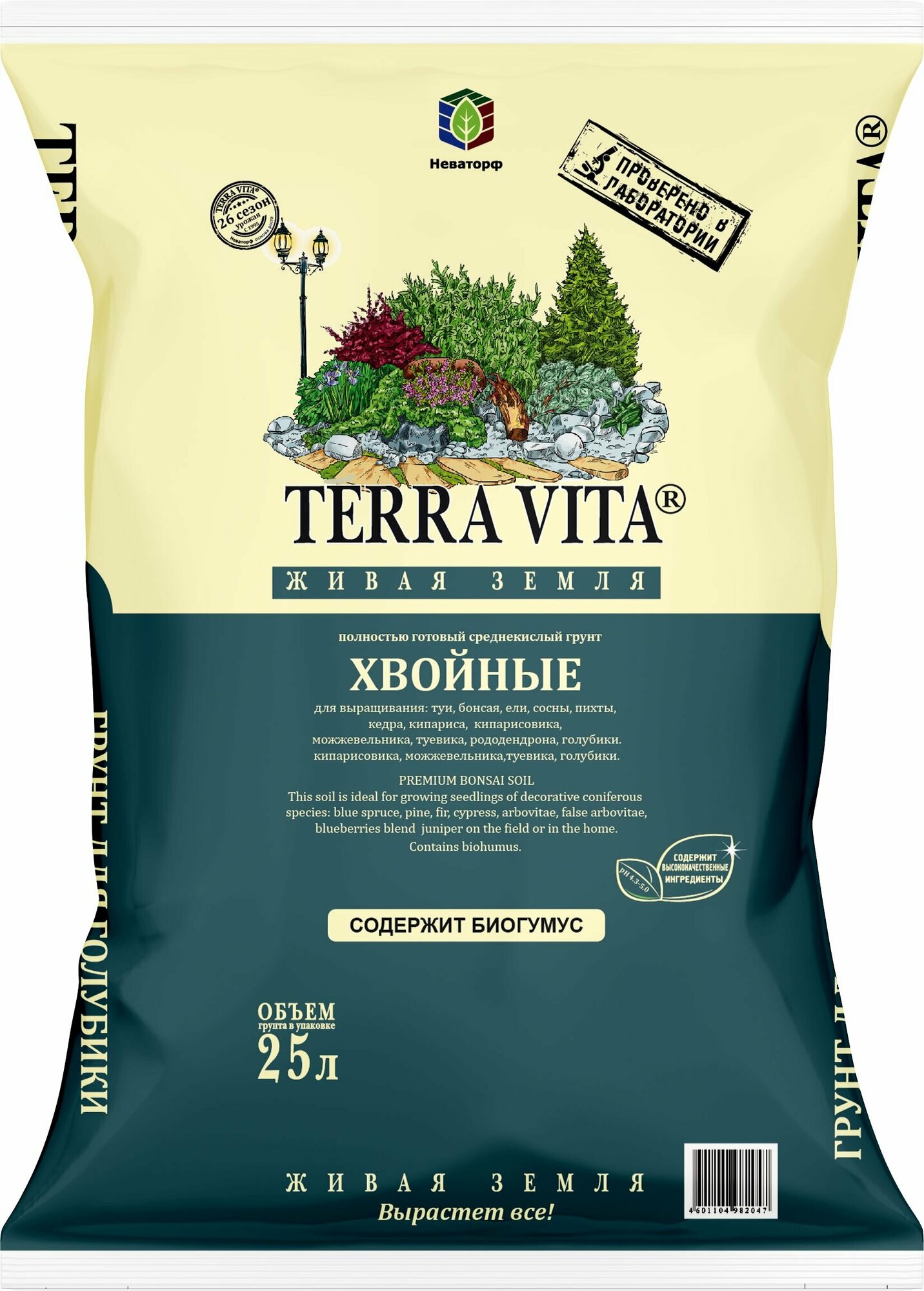 Купить Грунт Terra Vita "Живая Земля" Хвойные / Голубика / Рододендрон, 25л, 1шт