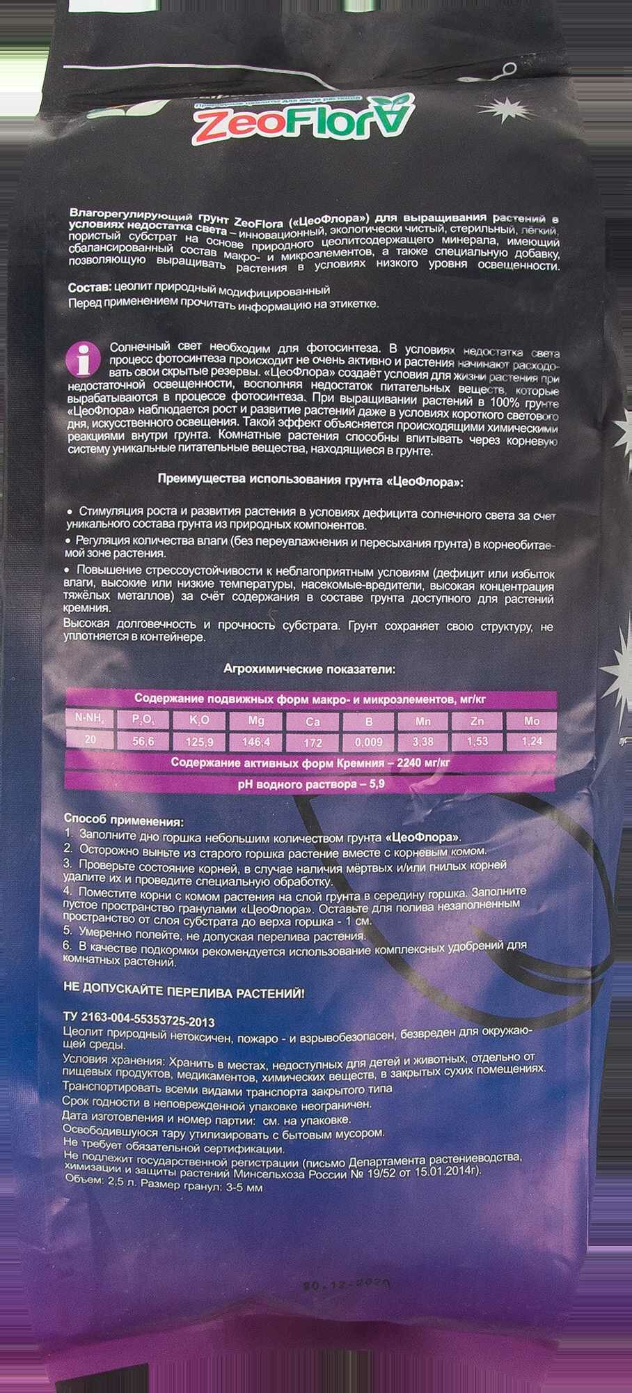 Субстрат минеральный ZeoFlora для растений с недостатком света, цеолит, влагорегулирующий грунт, 2.5 л, фракция 3-5 мм интересное: