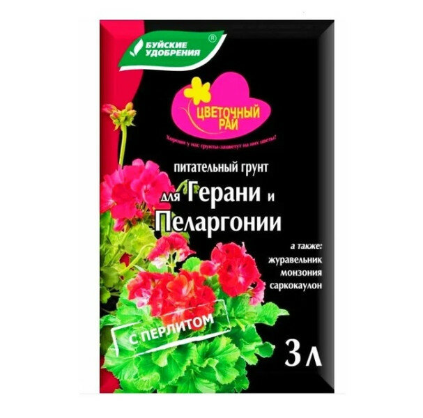 Грунт Цветочный Рай для Герани и Пеларгонии, Буйские удобрения, 3л