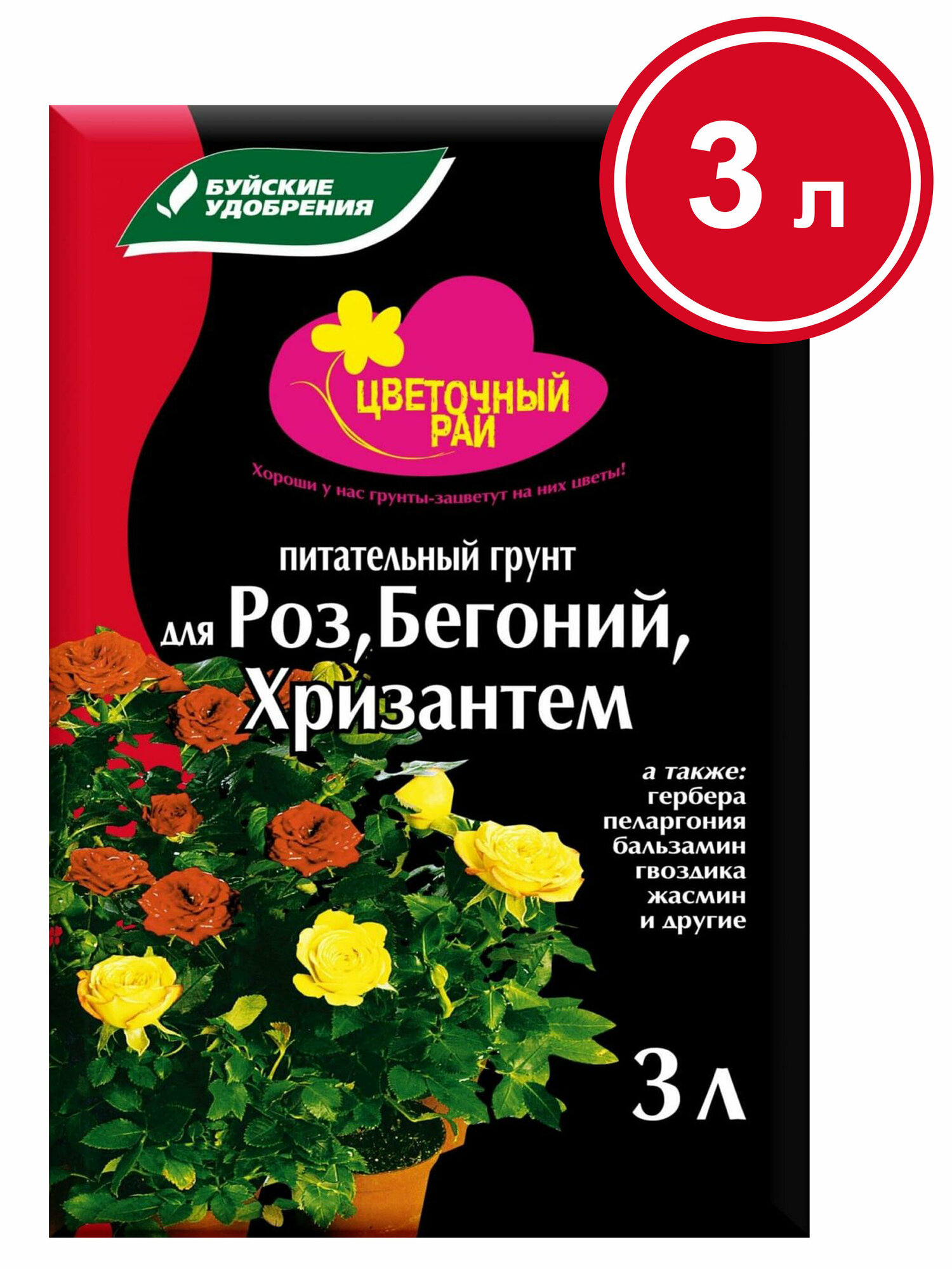 Купить Грунт Цветочный Рай для Роз, Бегоний, Хризантем, Буйские удобрения, 3л