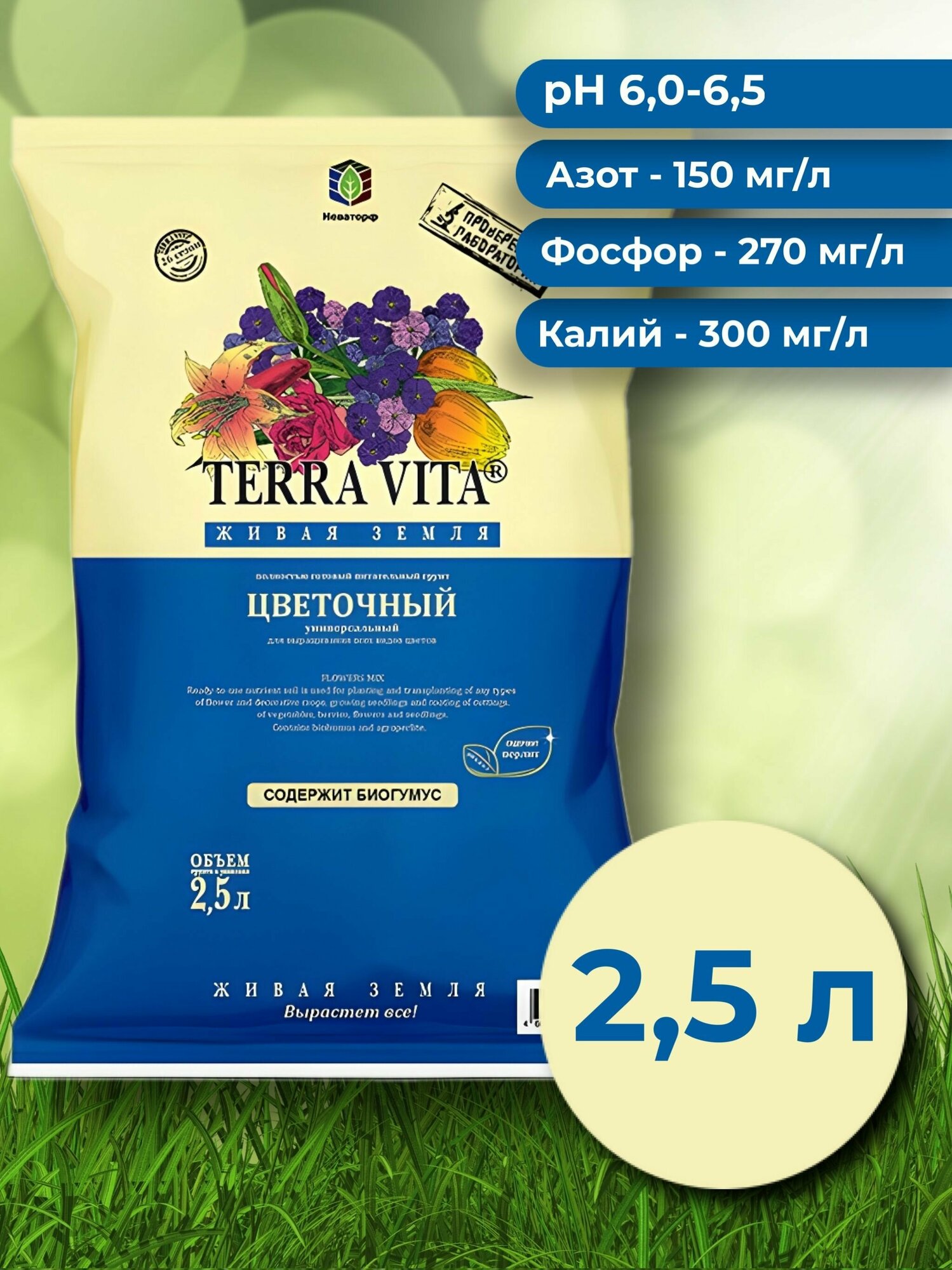 | Состав | Грунт цветочный "Живая Земля", 2,5 л |