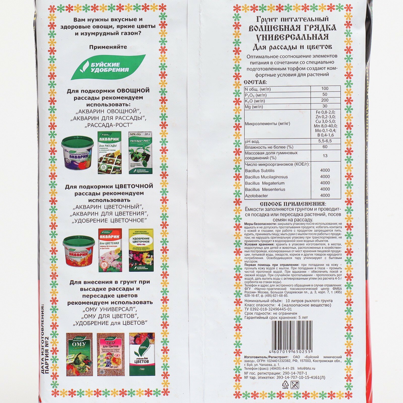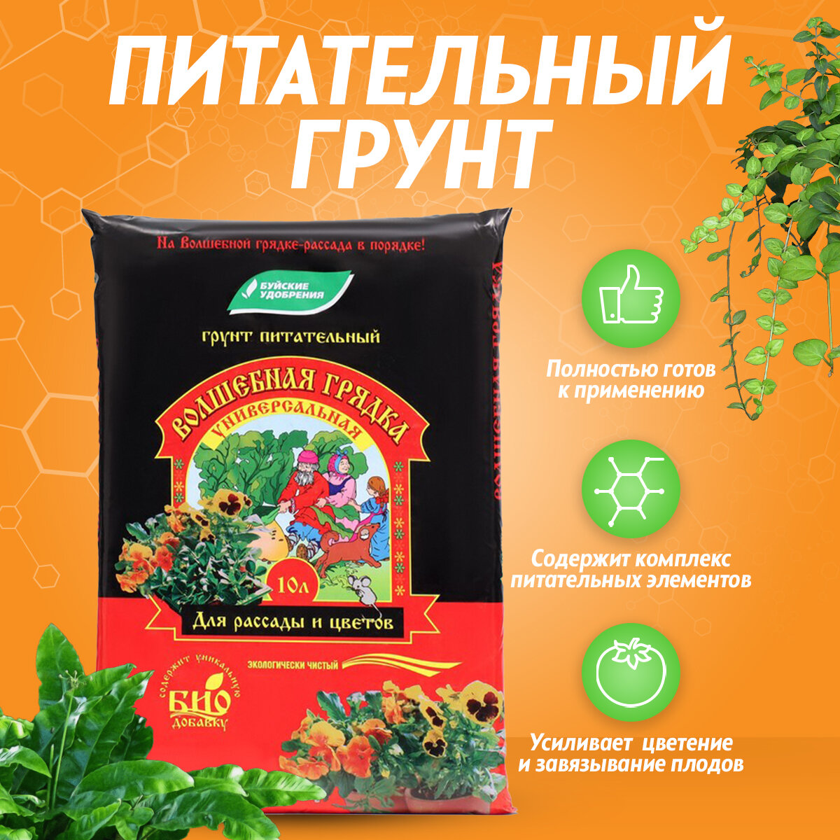 Грунт для рассады и цветов универсальный, Буйские удобрения "Волшебная грядка", 10 л