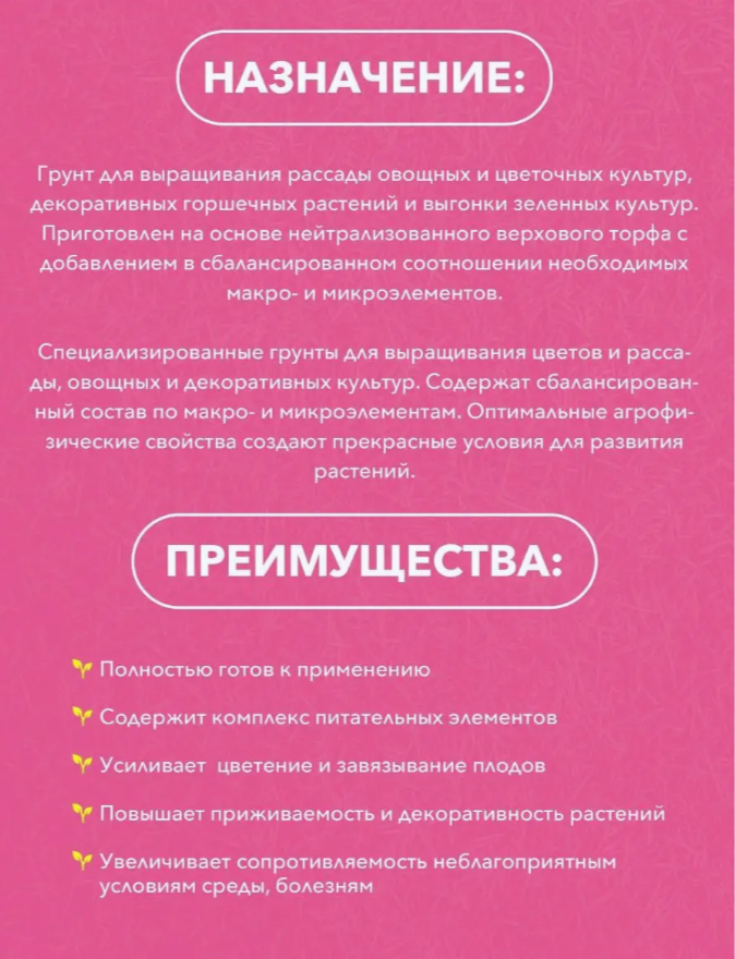 | Дополнительная информация | Грунт питательный "Волшебная грядка" универсальный / Земля для цветов, для комнатных растений |
