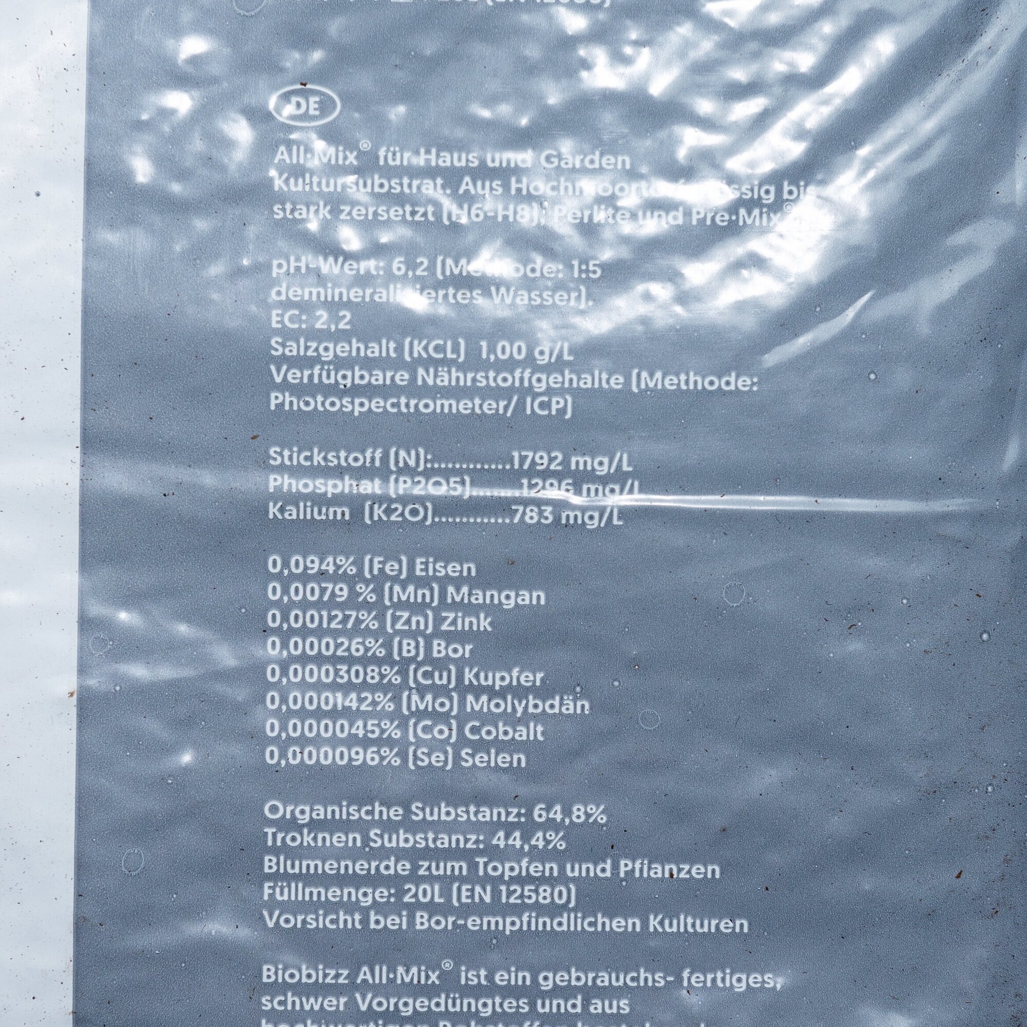 | Состав | Субстрат BioBizz All-Mix, 20 л, 6.2 кг |
