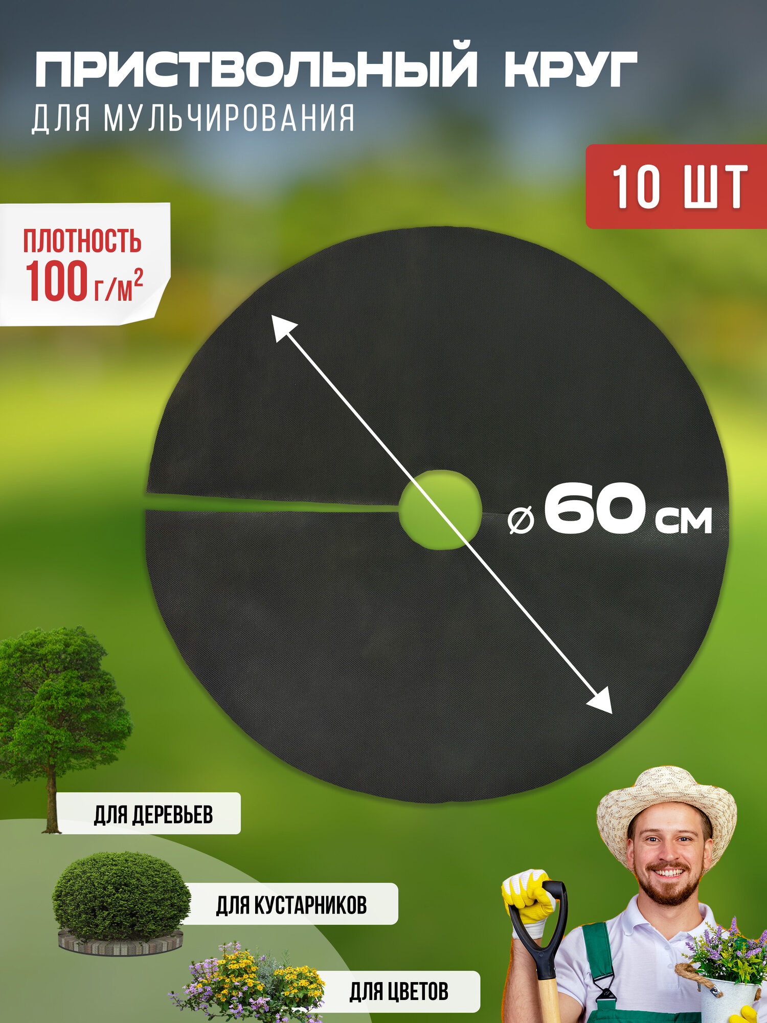 Приствольный круг для мульчирования 100 гр/м2, диаметр 60 см, 10 шт интересное: