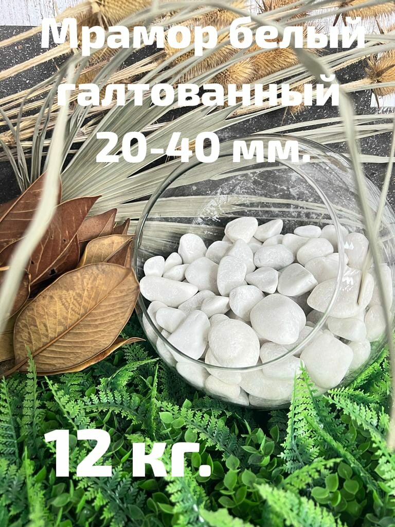 Ландшафтный камень/Мрамор белый галтованный 20-40 мм 12 кг/камни для декора интересное: