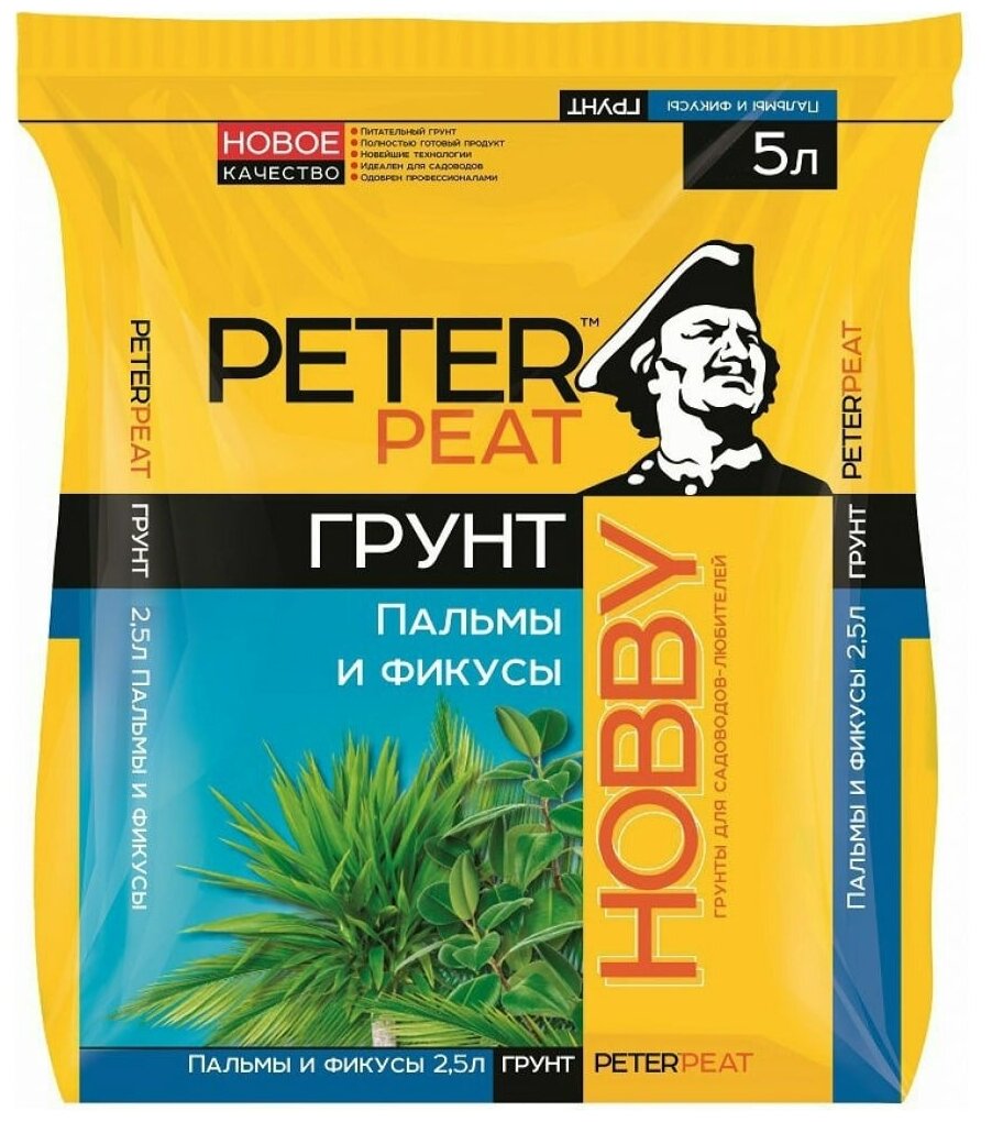 Грунт для пальм и фикусов Peter Peat Hobby, 5 л, торф, Россия