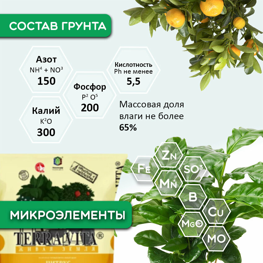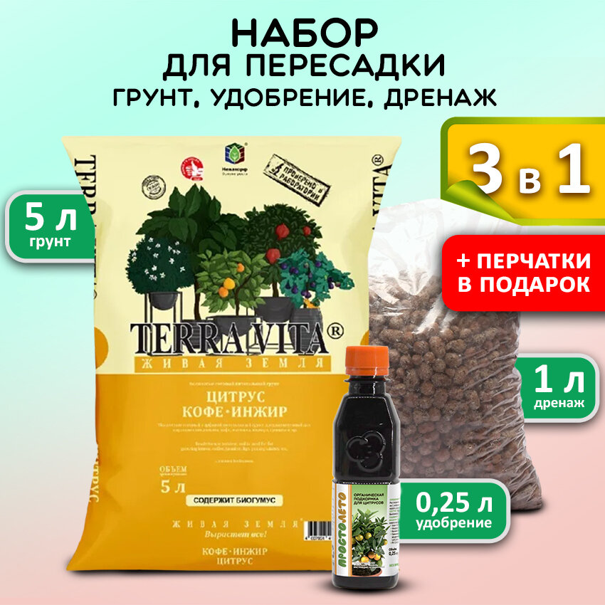 Купить Terra Vita Набор для пересадки Цитрусовых, Кофе и Инжира: почвогрунт 5 л, удобрение 250 мл, дренаж 1л
