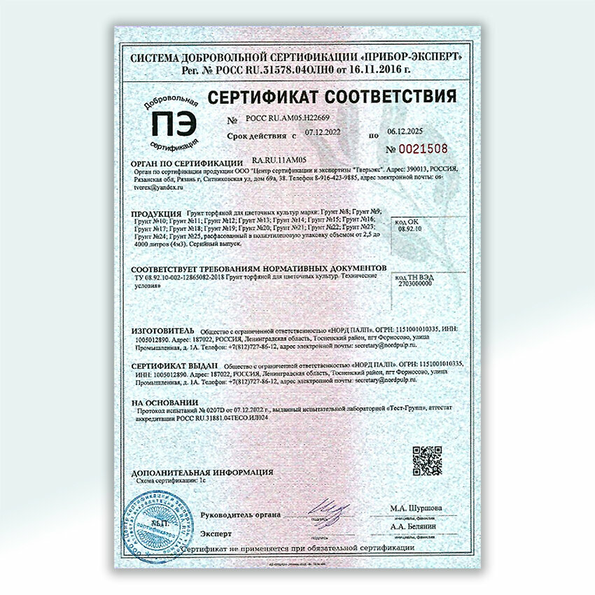 | Основные питательные вещества в мг/л, не менее | Содержание основных питательных элементов, мг/л, не менее: 200мг/л Азот(NH4+NO3) 300мг/л Калий(K20) 200мг/л Фосфор(P2O5) pH солевой суспензии 5,5 |