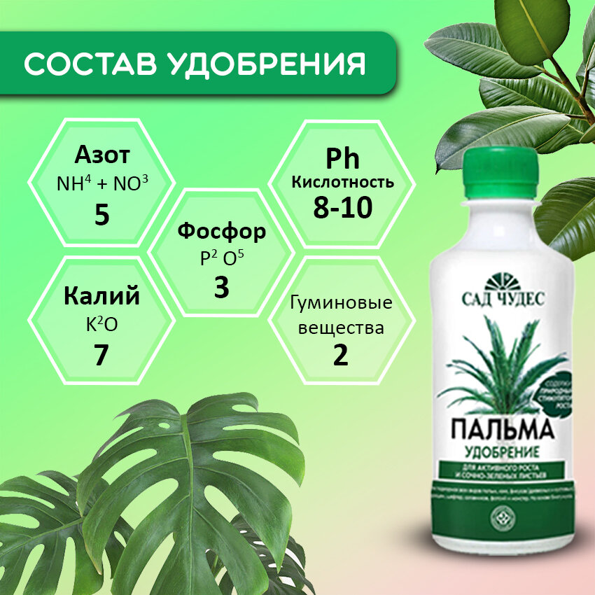 | Основные питательные вещества в мг/л, не менее | Содержание основных питательных элементов, мг/л, не менее: 200мг/л Азот(NH4+NO3) 300мг/л Калий(K20) 200мг/л Фосфор(P2O5) pH солевой суспензии 5,5 |