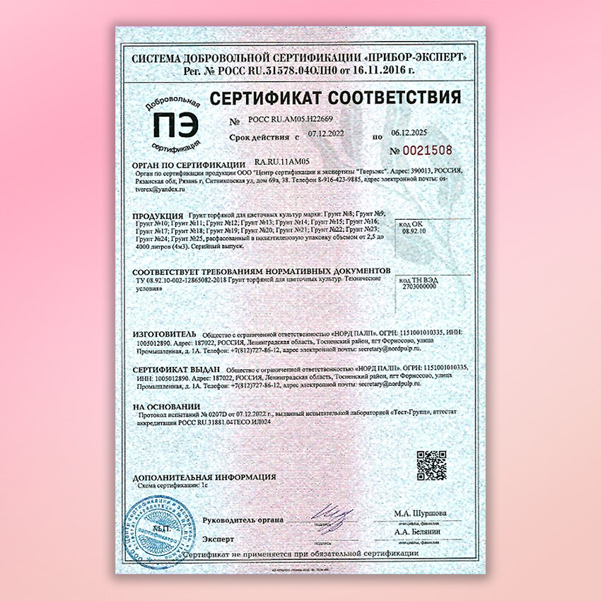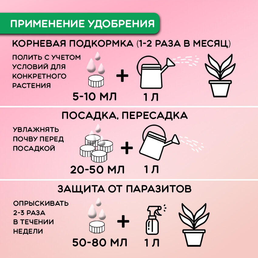 | Основные питательные вещества в мг/л, не менее | Содержание основных питательных элементов, мг/л, не менее: 200мг/л Азот(NH4+NO3) 300мг/л Калий(K20) 200мг/л Фосфор(P2O5) pH солевой суспензии 5,5 |