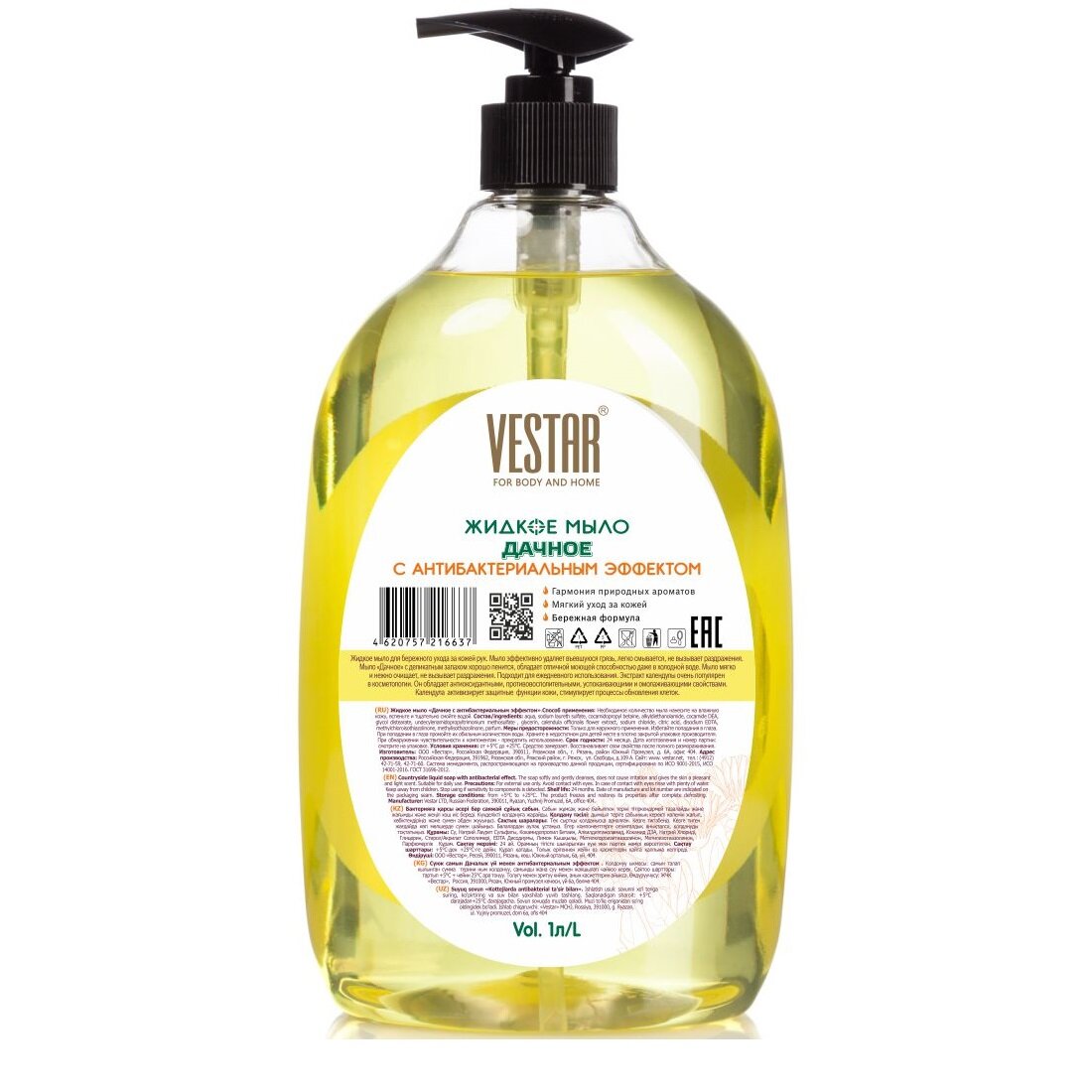 Жидкое мыло VESTAR, Дачное антибактериальное с экстрактом календулы, с дозатором, 1000 мл 9196949