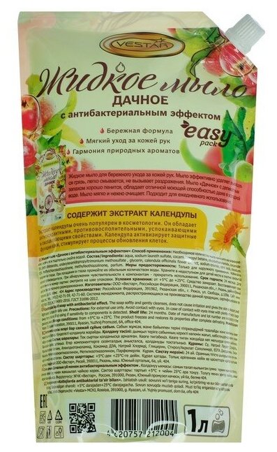Мыло жидкое Вестар 1000 мл "Дачное" антибактериальный эффект дой-пак 603-М7-2004