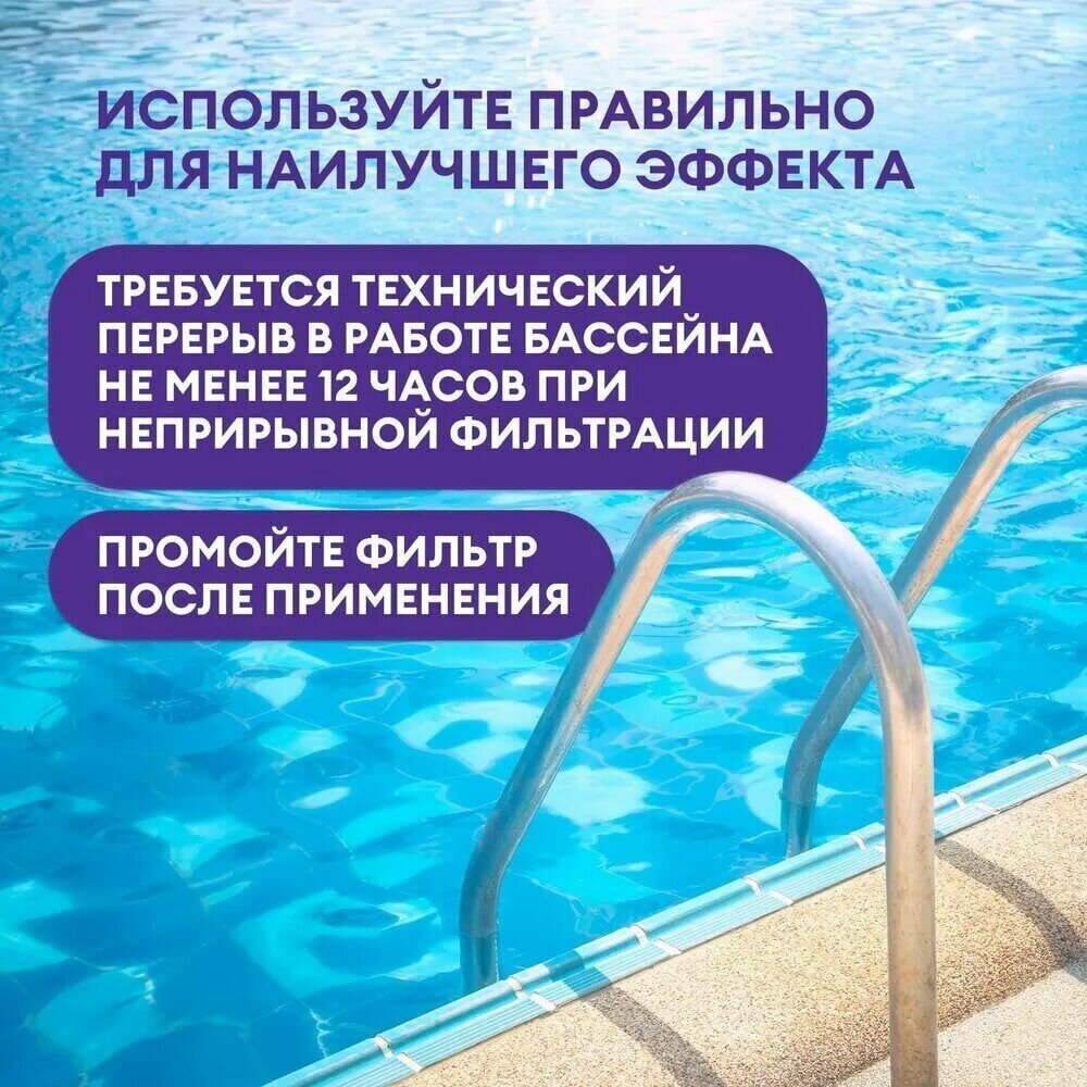 | Назначение | консервирование бассейна / обеззараживание / осветление мутной воды / очистка / против цветения воды / регулирование pH / универсальное средство |