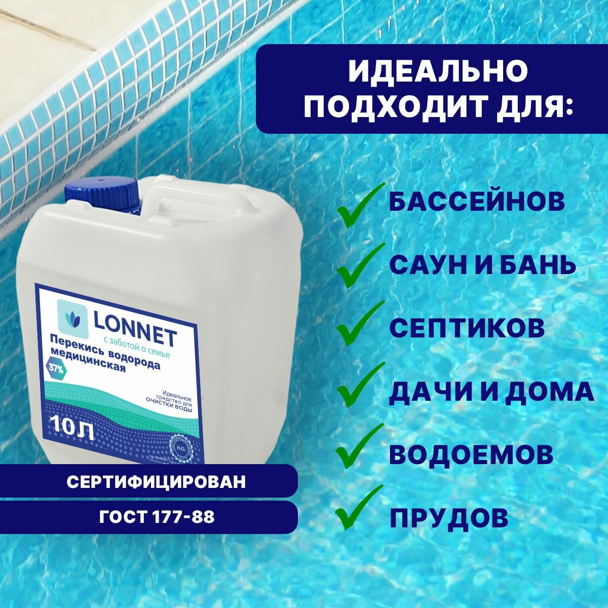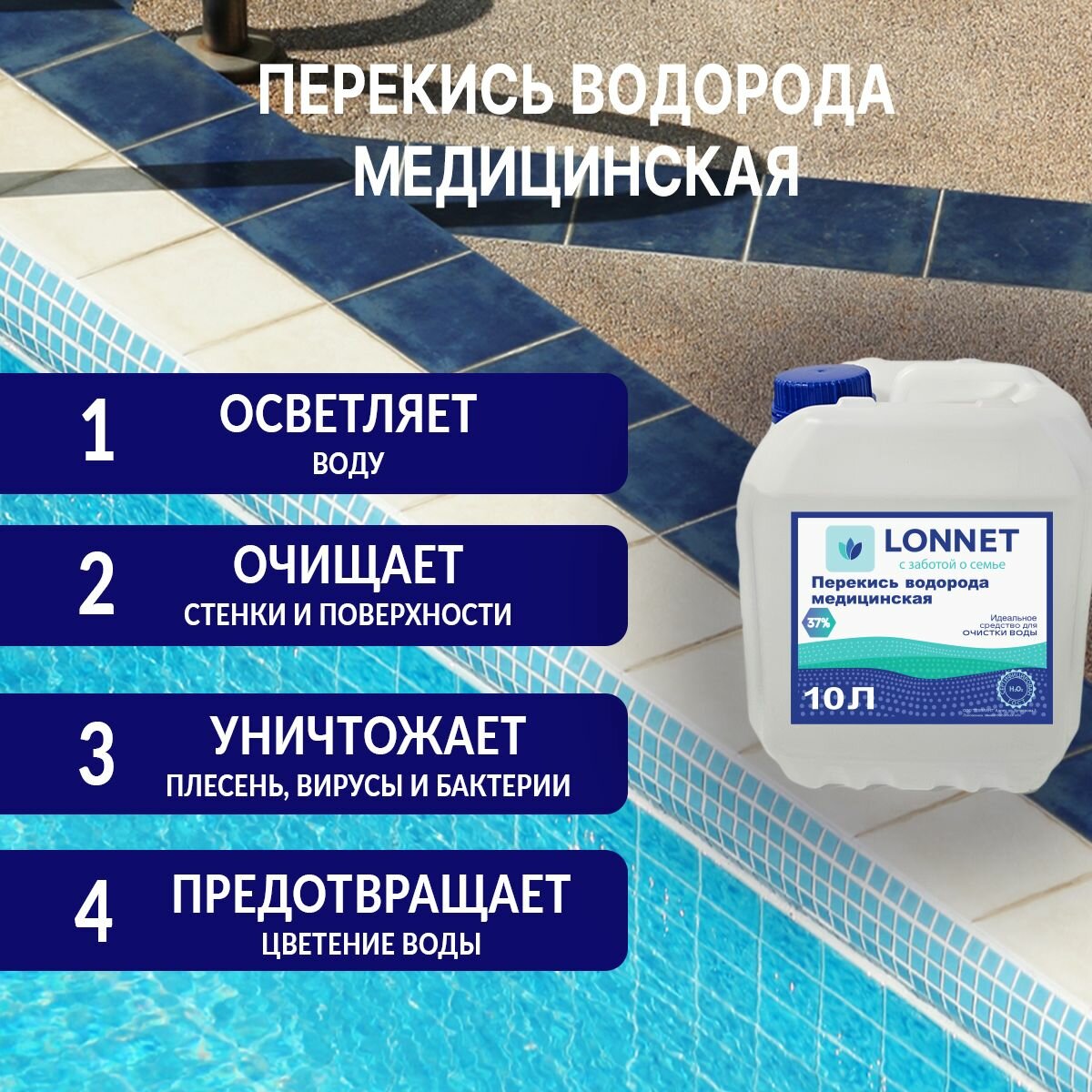 Перекись водорода 37% медицинская для бассейна, 10л / Пергидроль / Химия для бассейна интересное: