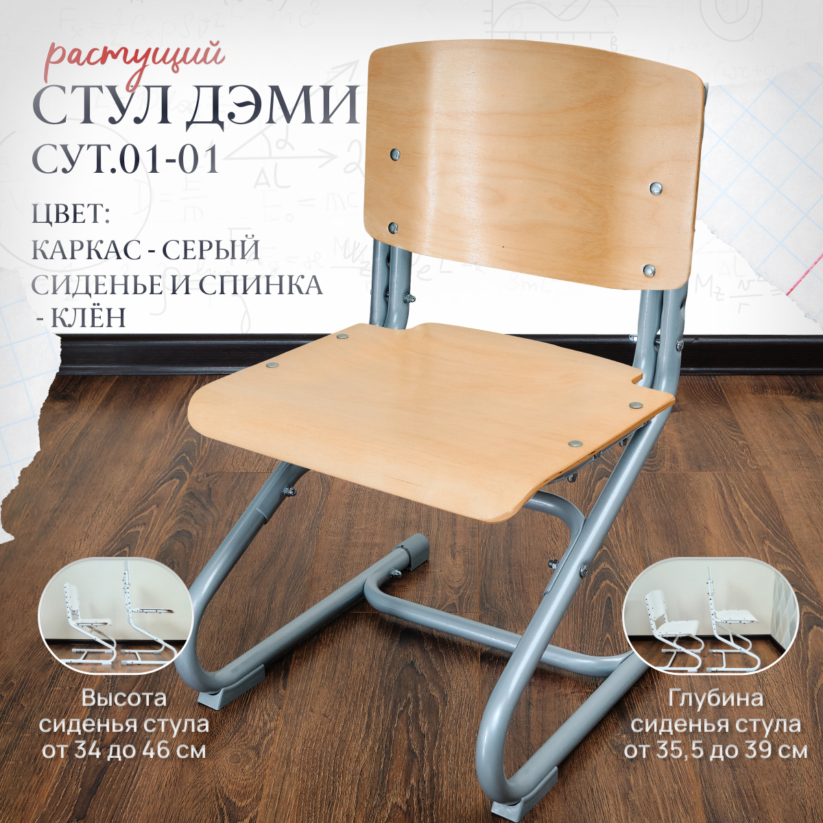 Стул ученический регулируемый "ДЭМИ" СУТ.01, 400х330-343х795-874 мм, серый каркас, фанера лак
