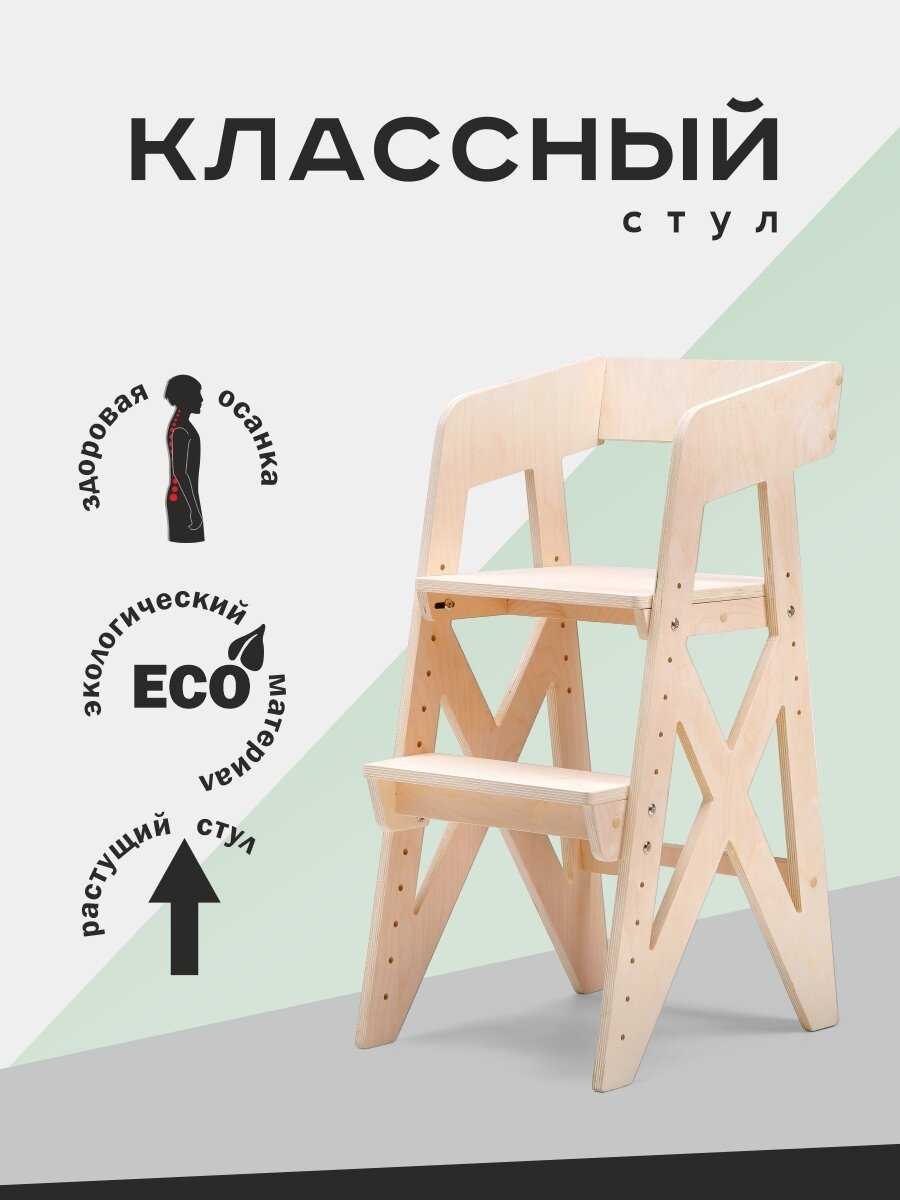 СохранитьРастущий стул Классный Игры с пользой деревянный отшлифованный для детей (Классный) интересное:
